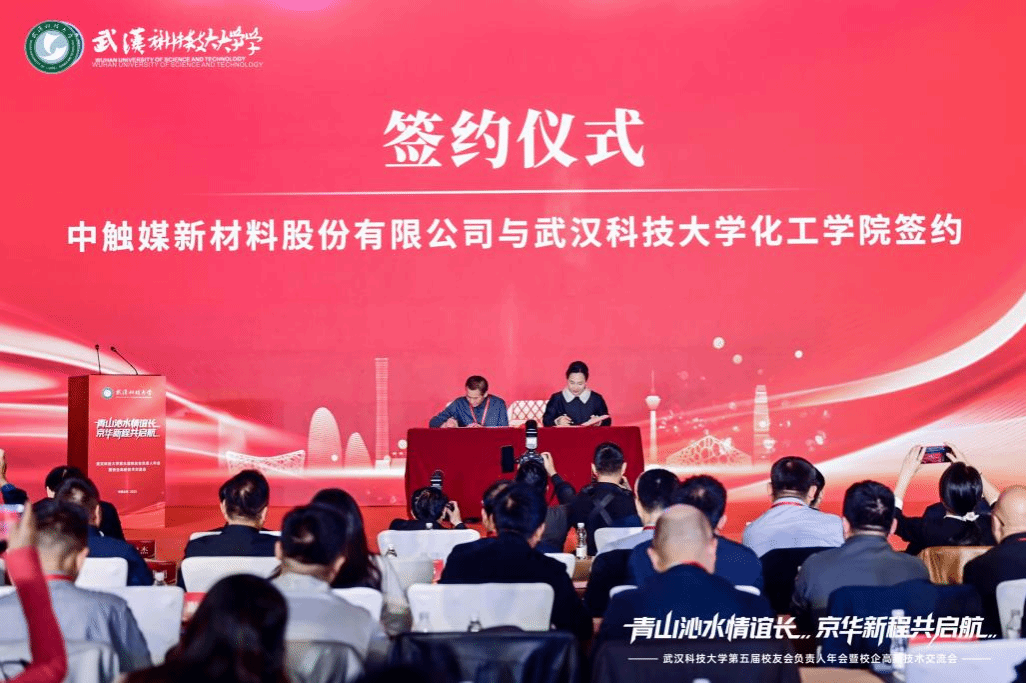 科创合作环节中,学校科学技术发展院成果转化中心副主任官德华介绍了武科大近年优秀科研成果。现场举行了多项科创合作签约仪式,北京利尔高温材料股份有限公司与材料学部签订2026 年 “武科大一利尔奖学金”,北京可瑞生物科技有限公司、中触媒新材料股份有限公司分别与医学部、化工学院达成合作。北京利尔总裁颜浩、可瑞生物董事长谢兴旺等企业代表分享了合作愿景与创新规划。