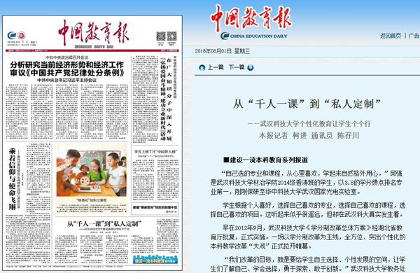 “我们改革的目标,就是要给学生自主选择、个性发展的空间,让学生们了解自己、学会选择,勇于探索、敢于创新。”武汉科技大学教务处处长程光文说。