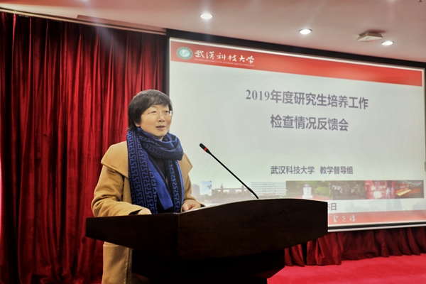 武科大网讯(通讯员陈文思)12月25日上午,2019年研究生培养工作检查反馈会在主楼18楼报告厅举行。副校长刘静,研究生院院长吕勇,各学院分管研究生工作负责人、相关工作人员,督导组全体成员和相关职能部门负责人参加会议。会议由研究生院培养教育处副处长刘军伟主持。