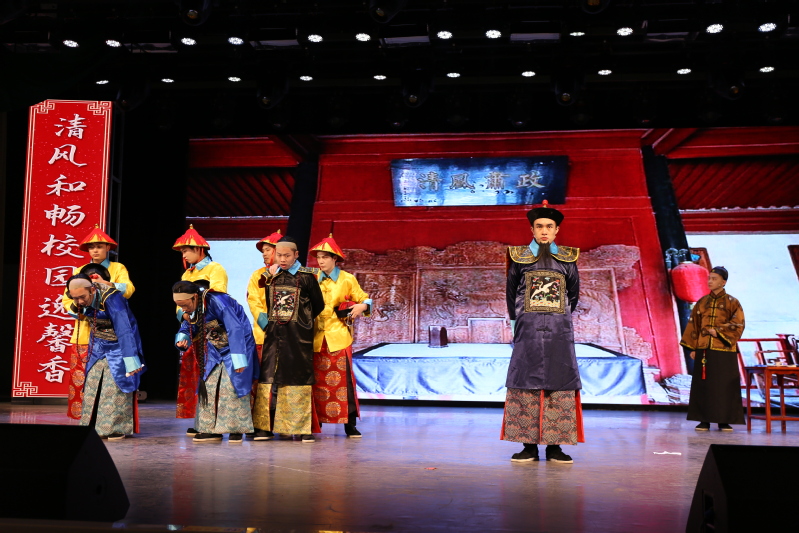 群口快板《风清月更明》用欢快的形式、通俗易懂的语言展现了我校建校以来在廉政建设上做出的努力,赞颂了张之洞、许白昊等前辈的刚正不阿。