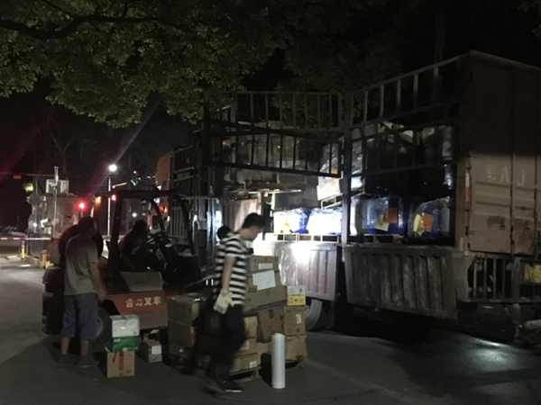 因为危废数量太多,国资处、保卫、后勤的工作人员和化工、材冶的老师都加入到搬运队伍中来。到30日凌晨4点半, 整个卡车已经装满,但是仍然有二分之一的危废和气瓶没装上去。