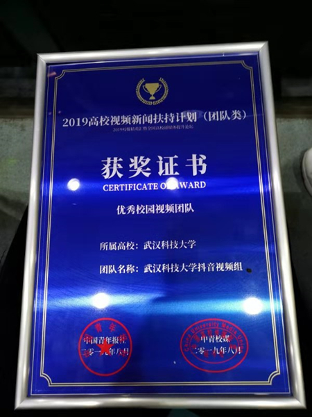 武科大网讯(记者陈孖川)8月19日,2019校媒精英汇暨全国高校融媒体提升论坛在在浙江财经大学召开,我校抖音视频团队获得优秀校园视频团队奖。