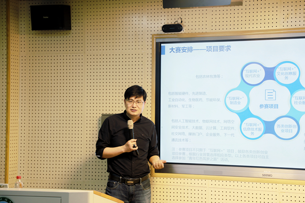 主讲嘉宾帮助大家了解项目策划书的构成要素和常见写法,鼓励“专业人干专业事”,希望我校各专业的师生能跨院、跨专业组队参赛。并用2018年“互联网+”国赛五强争夺赛项目哈尔滨工程大学的“海洋智能中端”做案例分析,提醒注意项目路演的各种技巧。
