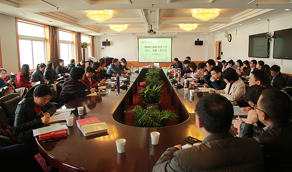 党委宣传部常务副部长孔波总结了2018年学校宣传思想文化工作,并对2019年工作进行部署。党校副校长陆勇对2019年党校工作作全面部署。党委宣传部副部长仵霜部署“学习强国”学习平台工作。