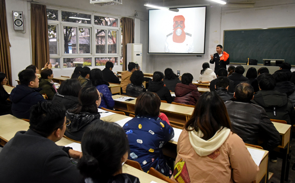 武科大网讯(记者方斌) 12月12日,机关工会在青山校区主楼0113教室举办主题为“全民参与 防治火灾”的消防知识培训。邀请武汉全民防火中心刘政教官主讲。他以大量的火灾图片和视频警示人们对火灾后果的认识,指导大家如何正确地防火、灭火。大家对刘教官现场提问积极抢答。机关工会全体会员参加培训。