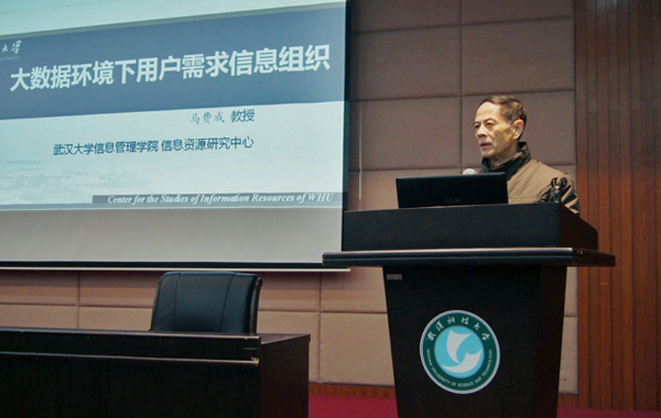 围绕大会主题“大数据环境下图书馆知识组织与知识服务”,武汉大学大数据研究院长资深教授马费成作了《大数据环境下用户需求信息组织》学术报告;华中师范大学信息管理学院院长李玉海作了《数字驱动的高校图书馆知识服务新探》学术报告;华中科技大学图书馆副馆长袁青作了《面向双一流建设的图书馆知识服务》;东北大学图书馆副馆长姜宇飞作了《基于“双一流”建设的图书馆空间改造》;武汉科技大学图书馆副馆长邹晓顺作了《知识组织—缘起、现状与未来》等主题报告。参会代表就大会主题进行了深入交流。接着,图书馆相关服务机构做了相关主题讲座。最后由图书馆研究分会新任秘书长北京科技大学图书馆馆长王瑜作大会总结,宣布了第38次年会的主办方和主办地点。