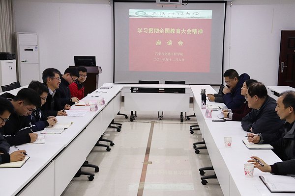 武科大网讯(通讯员喻亚林 黄乐源)12月6日下午,学习贯彻全国教育大会精神座谈会在汽车学院90517会议室召开,校党委副书记盛建龙、组织部副部长伍学云、汽车学院党委书记张会利、院长应保胜及各党支部书记和代表参与座谈。