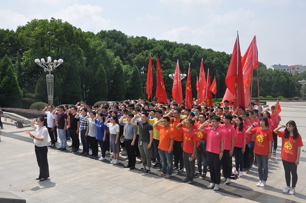 13日上午,师生队列整齐,穿过高大宏伟的绿瓦金字牌坊,进入黄麻起义鄂豫皖苏区革命烈士陵园。烈士纪念碑碑前,校学工处副处长鞠磊主持宣誓仪式,学生代表敬献花篮,师生全体肃立默哀一分钟并三鞠躬以表达对革命先烈的崇敬和缅怀。面对庄严的党旗,校党委组织部副部长潘丽莎带领全体师生庄严宣誓:继承先辈遗志,弘扬革命精神,刻苦学习,勤奋工作,为实现中华民族的伟大复兴而奋斗。