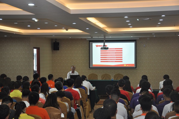 下午,红安县文物局原任局长王绍华为师生做主题为“不忘初心,牢记使命”的报告。已逾古稀的他用一口带着家乡味的普通话向同学们讲解了党的十九大报告、党的纪律、革命理想等内容,同时穿插着红安县革命英雄的感人故事,同学们聚精会神地听着故事和报告,感受着革命精神。王绍华提出了“一要三不要,一图两不图”的红安精神,并对我校学子寄予了深厚期望。王绍华表示,通过红安行,对大学生的灵魂思想是一种启迪和升华。我校35年的红安行在国内都是少有的,是值得大力提倡的。
