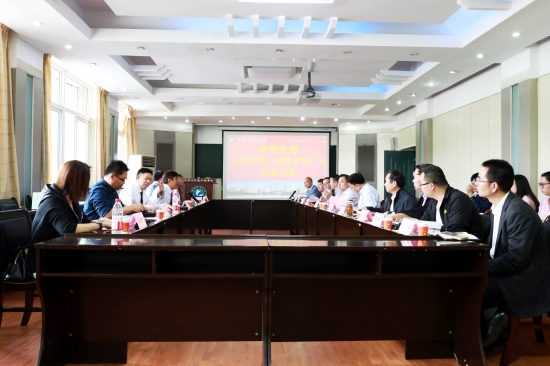 孙国胜致欢迎辞,代表学校对王国纶一行人的到来表示热烈欢迎,希望通过多方位的交流与协作,以面向时代要求、面向行业需求、面向学校发展,强化校行企合作机制,实现双方共赢。