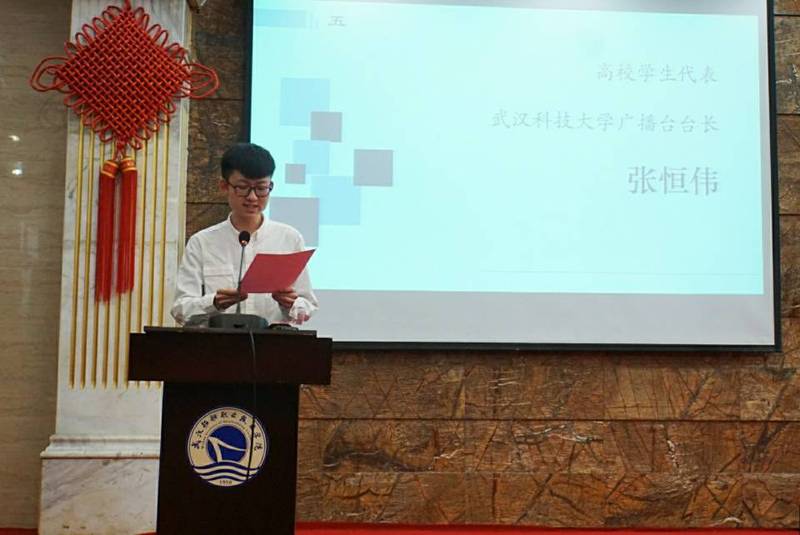 武科大网讯(见习记者 谢荣涛 程晨)4月13日下午,湖北高校广播联盟2018年峰会暨湖北省大学生新媒体作品大赛新闻发布会在武汉船舶职业技术学院举行,共青团湖北省委、湖北省发改委、人民银行武汉分行相关处室负责人,湖北广播电视台新闻广播部负责人以及湖北省65所高校代表参与会议,我校学生张恒伟代表65所高校在会上发言。
