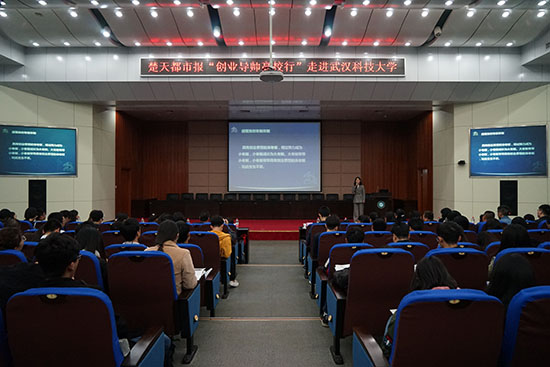武科大网讯(见习记者艾周梦 王若曦)为在我校营造创新创业的良好氛围,11月15日,楚天都市报“创业导师高校行”活动于黄家湖校区崇实会堂举行。本次活动由楚天都市报、东湖高新区产业发展和科技创新局以及盛隆大学武汉创业学院主办,创光谷商学院、《支点》杂志协办,武汉科技大学承办。盛隆电气集团董事、创业九公司总经理马艳丽,红桃k集团股份有限公司常务副总裁解砾,盛隆集团有限公司的各位领导,我校信息学院党委书记肖坤、院长刘振兴 ,创新创业学院副院长杨宁雪,学工处副处长肖军,管理学院副院长邱玉莲,文法学院副院长李莉作为嘉宾出席本次活动。