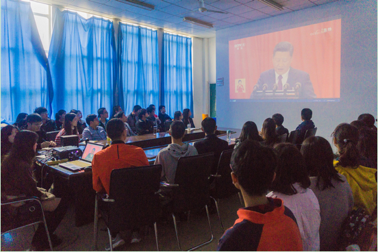 报告的过程中,会场时常响起热烈的掌声。观看会于中午12时30分结束,校团委宣传部委员曾澳华说:“今天,我们收看了十九大开幕现场直播,习近平同志的讲话内容深刻,振奋人心。作为一名为同学服务的校团委机关部门的委员,我要带头学习会议精神,将会议精神传达贯彻到位,去影响身边的青年大学生,用实际行动去践行十九大精神。”