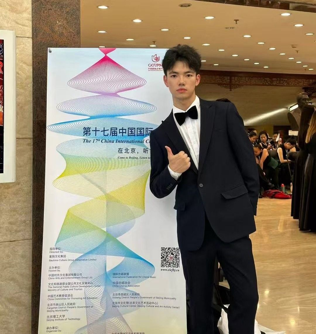 他热爱运动。从校运会110米栏、400米栏赛道上飞驰的身影,到作为院排球队主力与队员并肩作战的汗水,运动赋予他坚韧与活力。他也沉醉于音乐。在沁湖合唱团担任男高音的日子里,他随团斩获中国国际合唱节银奖与全国大学生艺术展演一等奖,音乐滋养着他的心灵。