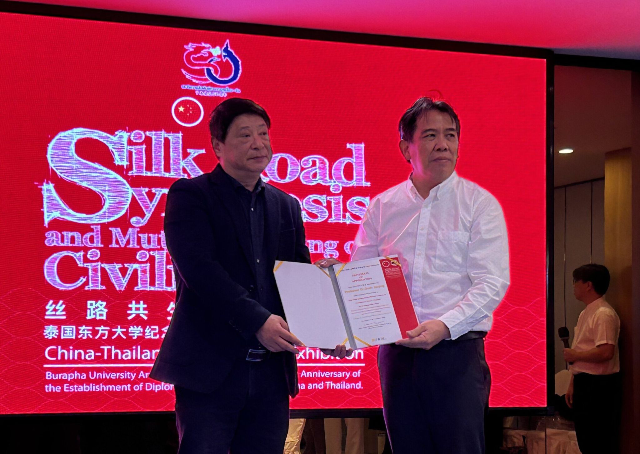 研讨会后,泰国东方大学美术与应用艺术学院塞尚院长向管家庆颁发了杰出贡献奖。