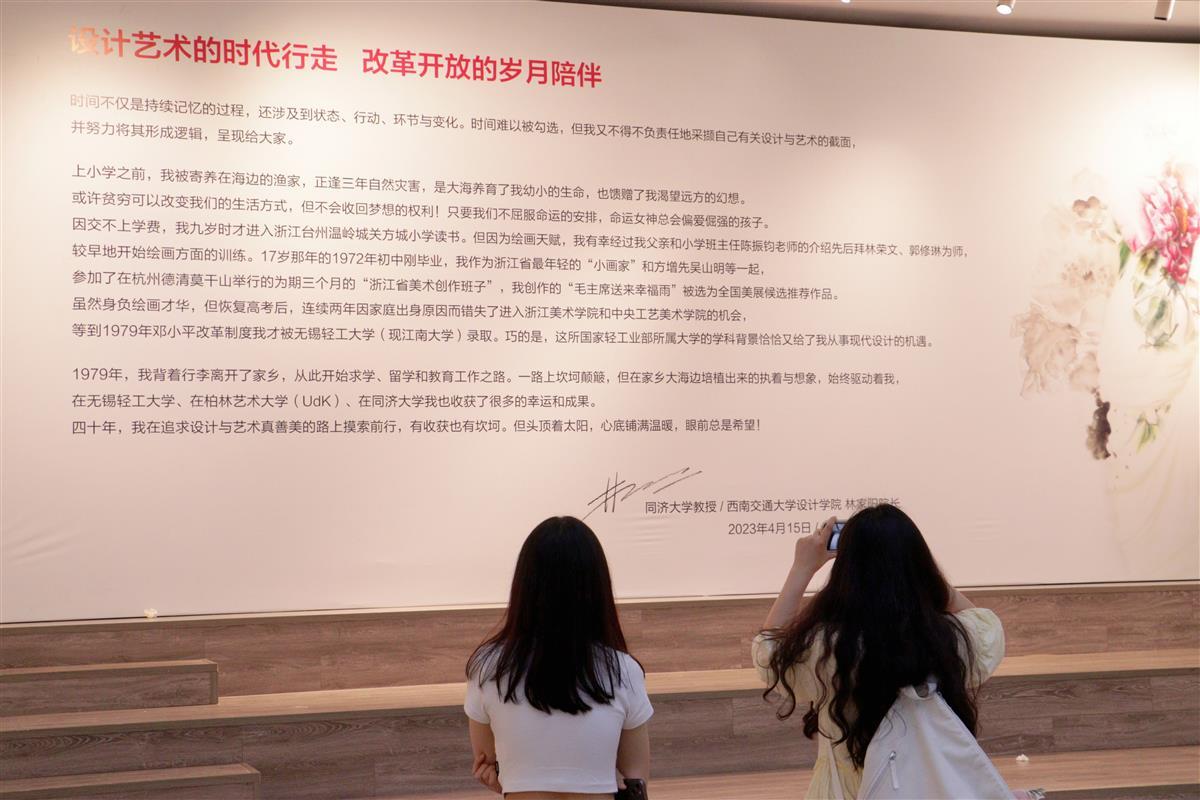 展示台上的众多证书和学术专著吸引了不少观展者驻足翻阅。“我看了林教授的书籍,林教授在书中讲解的设计创作知识给了我很多灵感和启发。看着展示台上的证书,我作为设计专业的学生,非常敬佩林教授在设计领域做出的卓越贡献。”武科大学生郭帆感慨地说。