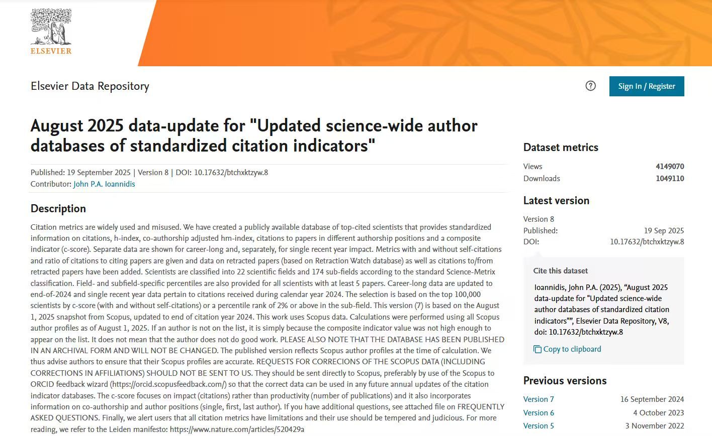 据悉,2025年榜单通过论文引用数、h因子、合著者修正的hm因子、单独或第一作者的文章引用数等综合参数,从全球近700万名科学家中,遴选出世界排名前2%的科学家,涵盖22个领域和174个子领域,共有超600所中国内地高校有学者入选。“终身科学影响力”榜单统计科学家职业生涯期间的综合表现,“年度科学影响力”榜单聚焦上一年度的学术影响力,能够更客观、更真实地反映科学家的学术号召力。(来源:武汉科技大学)