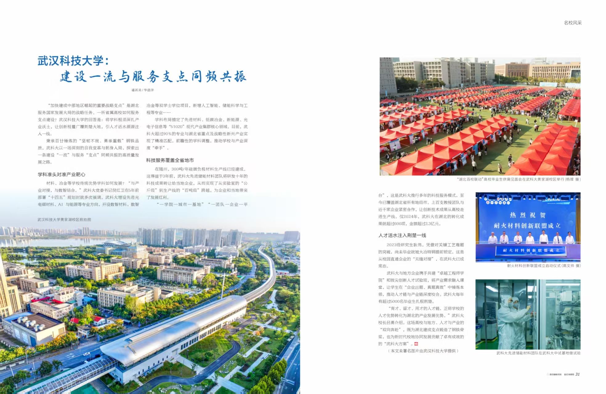 “加快建成中部地区崛起的重要战略支点”是湖北服务国家发展大局的战略任务。一所省属高校如何服务支点建设?武汉科技大学的回答是:将学科根须深扎产业沃土,让创新枝蔓广覆荆楚大地,引人才活水源源注入一线。
