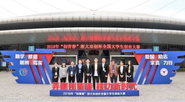 2018年“创青春”浙大双创杯全国大学生创业大赛决赛由共青团中央、教育部、人力资源和社会保障部、中国科协、全国学联、浙江省人民政府主办,浙江大学、共青团浙江省委承办,于2018年10月31日至11月3日在浙江大学举行。大赛于今年3月全面启动,全国共收到2200余所高校的逾百万名大学生、15万余件作品报名参赛。经各高校校赛、各省级竞赛、全国复赛选拔,共有来自全国31个省(自治区、直辖市),以及新疆生产建设兵团、香港特别行政区、澳门特别行政区197所高校的369件作品入围终审决赛。