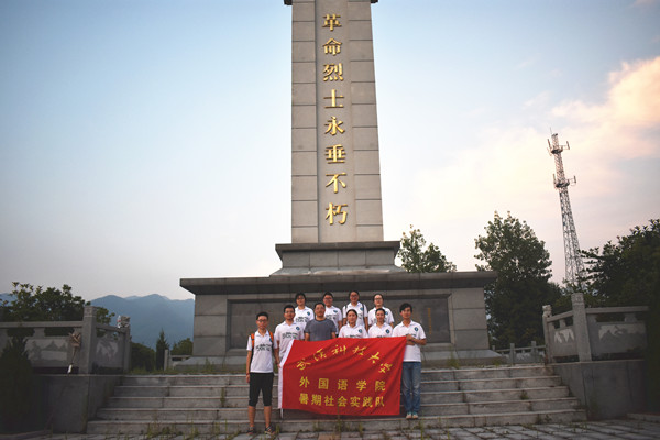 “走吧,我们去爬山,瞻仰烈士纪念碑。”吴少利老师对志愿者们说。7月17日晚饭后,实践队即刻出发前往山顶。一天的准备及教学后,志愿者们十分劳累,尽管如此,他们仍坚持爬完了近三公里的山路。到达纪念碑后,吴少利凝视着纪念碑,饱含深情地对学生们说道:“有些烈士牺牲的时候,年龄比你们还小,为了革命,有的烈士连名字都没有留下;看看山下璀璨的灯光,没有他们的牺牲奉献,哪有我们现在的幸福生活?”接着,吴老师领着队员瞻仰无名烈士墓,面对革命烈士纪念碑,深深地三鞠躬。“追忆先烈,让我知道了奉献精神的伟大,我们一定要把这份敢于奉献的精神传承下来,带到接下来的实践活动中去。”志愿者李赵诗感慨地说道。