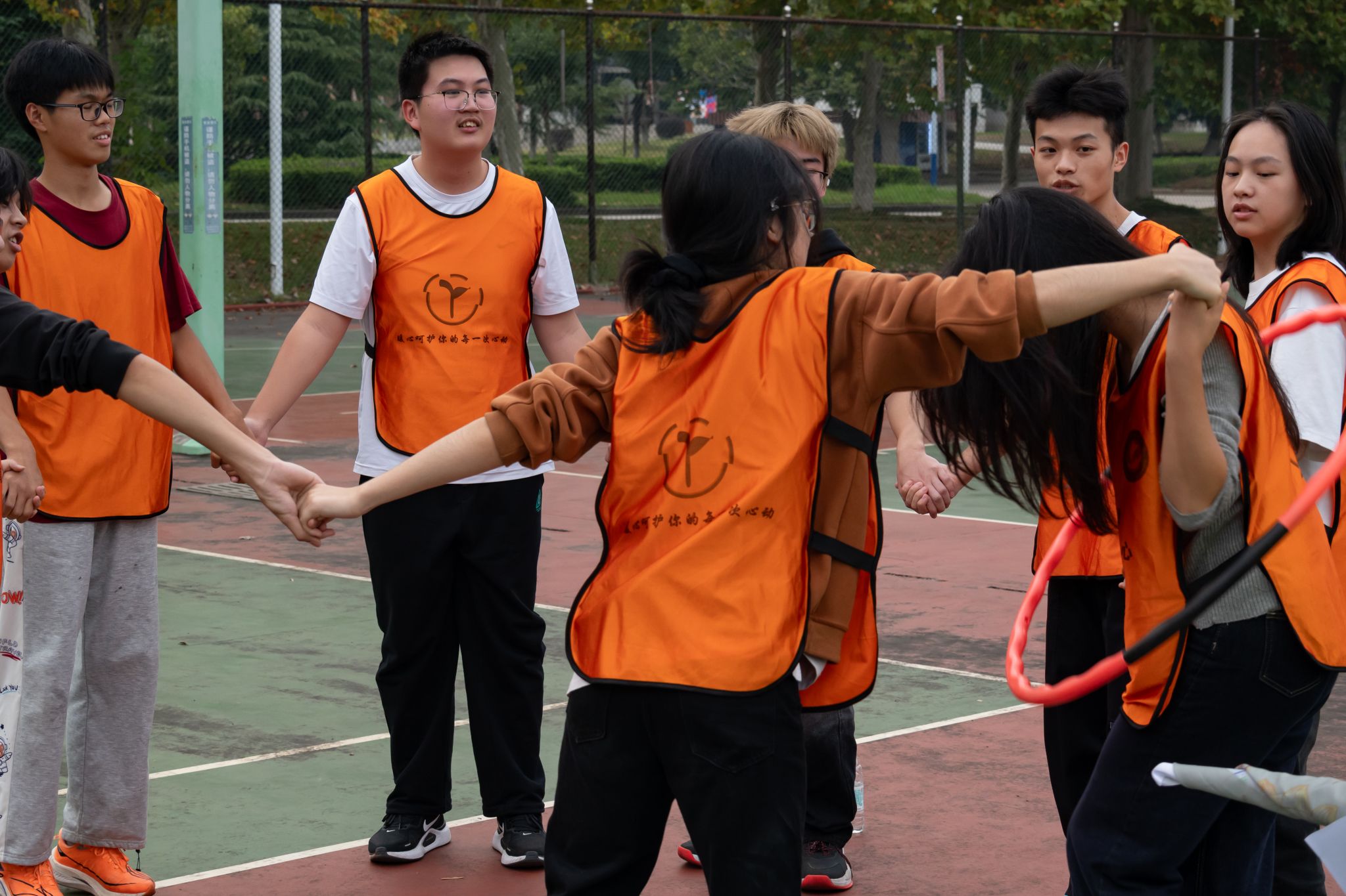 随后,学生们被随机分为六个小组,通过团队合作完成“一圈到底”、“竞技汉诺塔”、“珠行万里”、“急速60秒”四个项目。各小组共同制作小组旗帜,起队名,想口号,摆姿势,展现出极强的协作能力。
