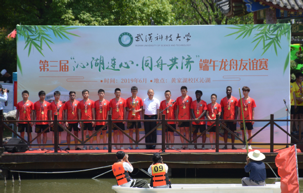 “一二一,一二一。”整齐有力的叫喊声从沁湖传来,两队龙舟队正在激烈比拼,在湖边的观众们也在为他们助威加油。“他们在之前训练的时候就非常辛苦,比赛真的好激烈,为他们打call。”预防1801的王必文感叹道。