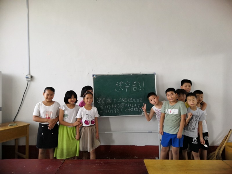 今天早上,沈红军一推开四年级教室的门,就看见学生一个个安静的待在自己的座位上,十分自觉。他推了推眼镜,再一抬头,就看见教室前面的小黑板上稀稀拉拉的写着几排字。“您辛苦了!”这四个字写的特别大,下面跟着写着“沈老师在这短短几日里,我们体会到您的辛苦和付出,老师我们爱您!小松班集体。”