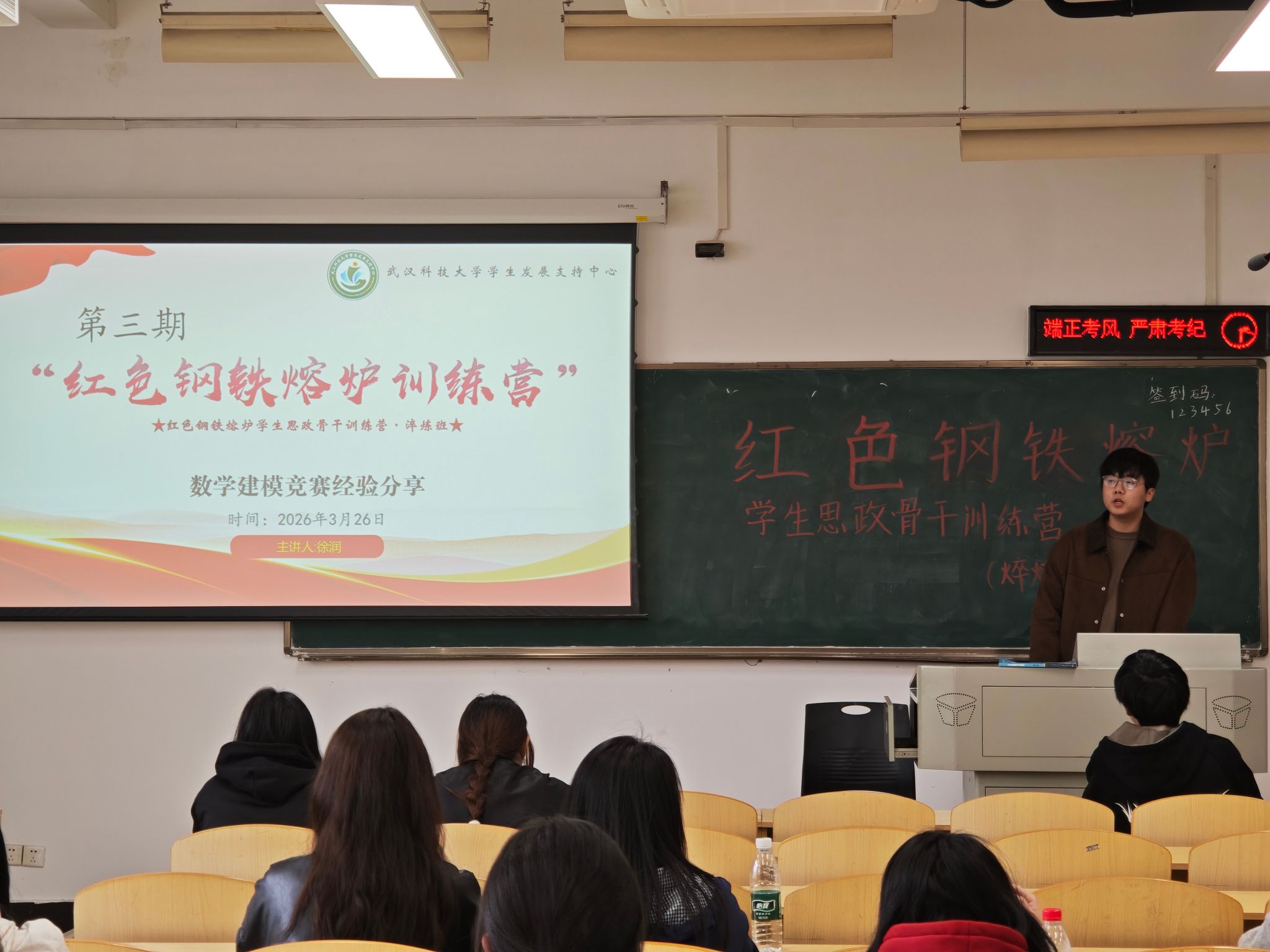 武科大网讯(通讯员林博文)3月26日,“红色钢铁熔炉”学生思政骨干训练营·淬炼班第三期——全国大学生数学建模竞赛经验分享会,在黄家湖主楼11403教室举办。本次活动特邀我校人工智能与自动化学院2023级本科生徐润担任主讲人,为学生带来全流程备赛与参赛经验指导,旨在进一步提升大学生的科创实践能力与专业综合素养。