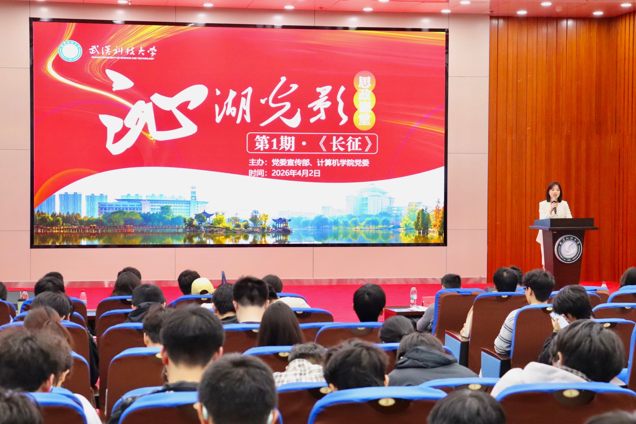 武科大网讯(通讯员 肖卓灵)“传承红色基因·汇聚支点力量”。4月2日晚,武汉科技大学“沁湖光影”思政课堂首场活动在黄家湖校区崇实会堂正式开启,近300名师生代表一起观看红色电影《长征》,共同缅怀革命先烈,弘扬长征精神。活动由党委宣传部、计算机科学与技术学院党委联合主办。
