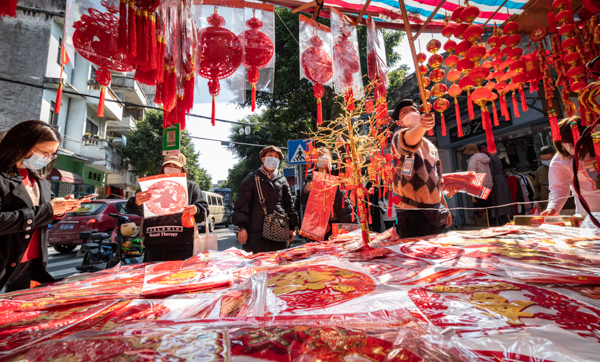 正值新年期间,路上都是返乡的车辆,政府也在道路旁布置了中国结,年味更浓。新的一年来临,春节作为中国传统节日,极具意义,除了除夕之夜的团圆饭,看春晚,贴春联的习俗,更会在新年期间四处游玩与身边人共贺新春。同时亲邻好友会一起放烟花,迎兔年,守年岁,欢喜热闹。(胡漫玲 付颖芳 伍倩颖)