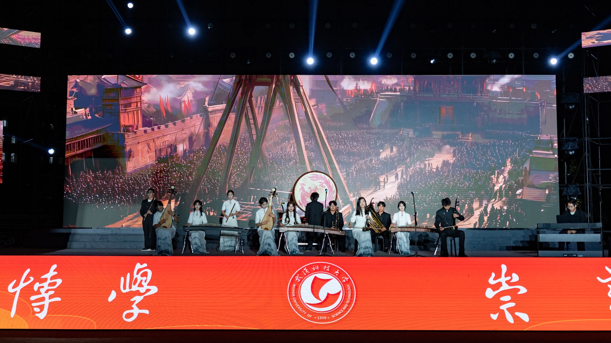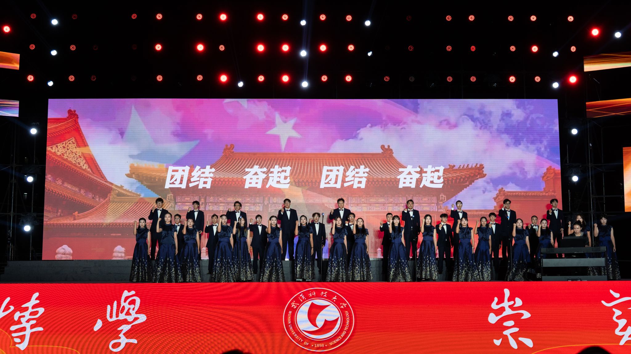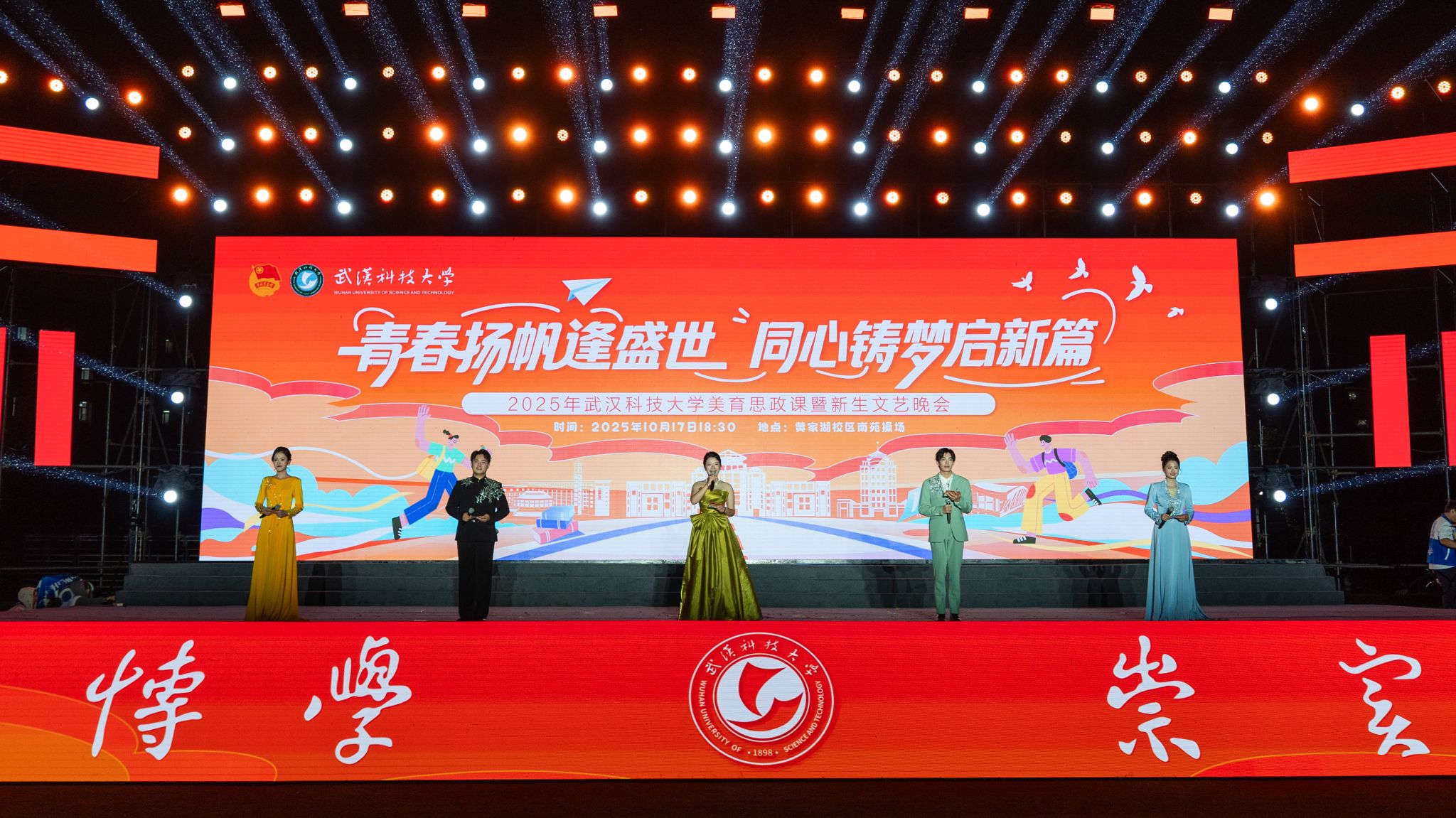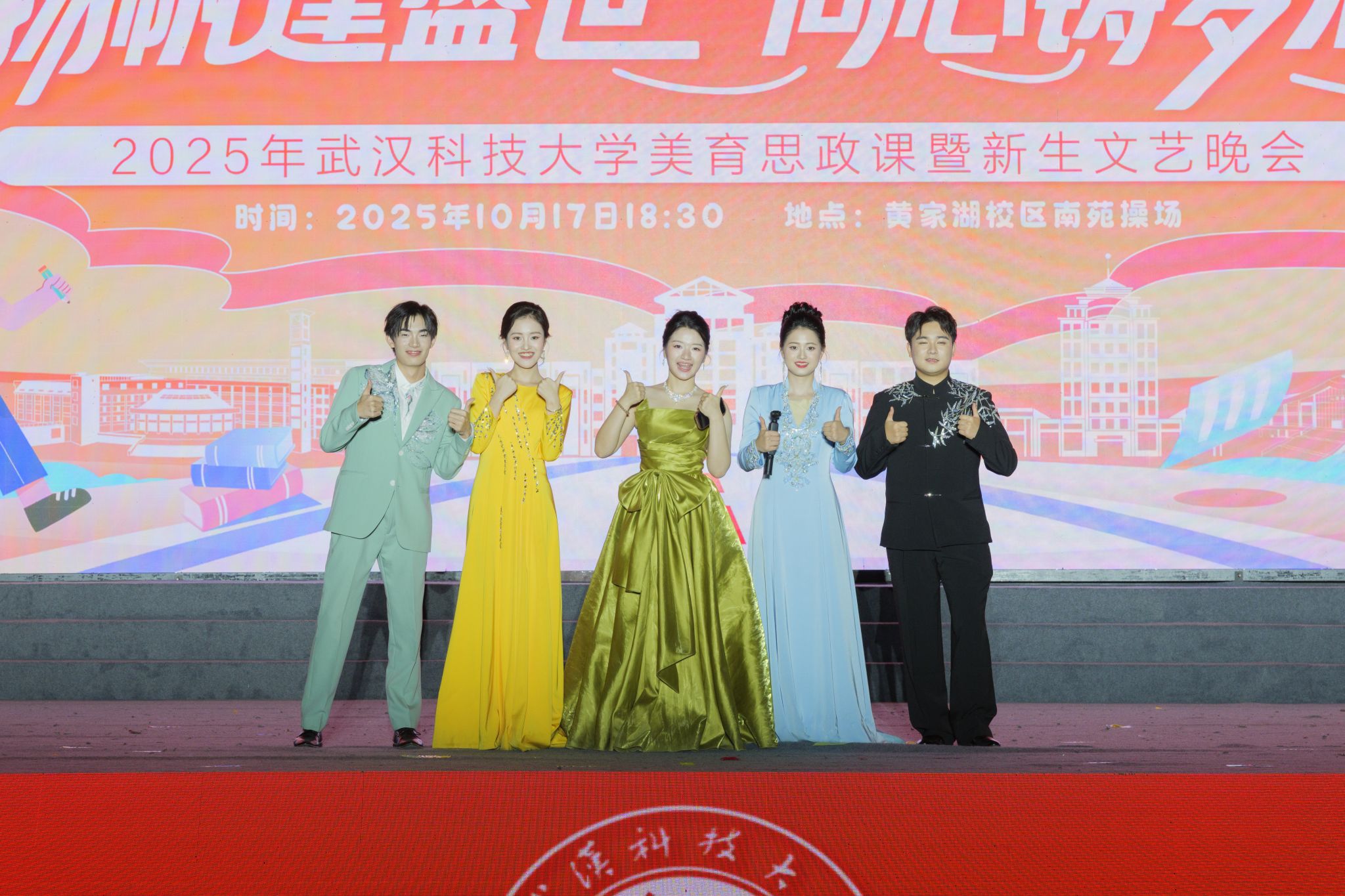 10月17日晚,我校在南园操场举行了2025年武汉科技大学美育思政课暨新生文艺晚会,活动分为三个篇章、共14个节目,节目形式涵盖乐队合奏、舞蹈、朗诵等多种形式,为2025级新生提供了良好的校园氛围,使他们更快融入校园。(王翔宇)