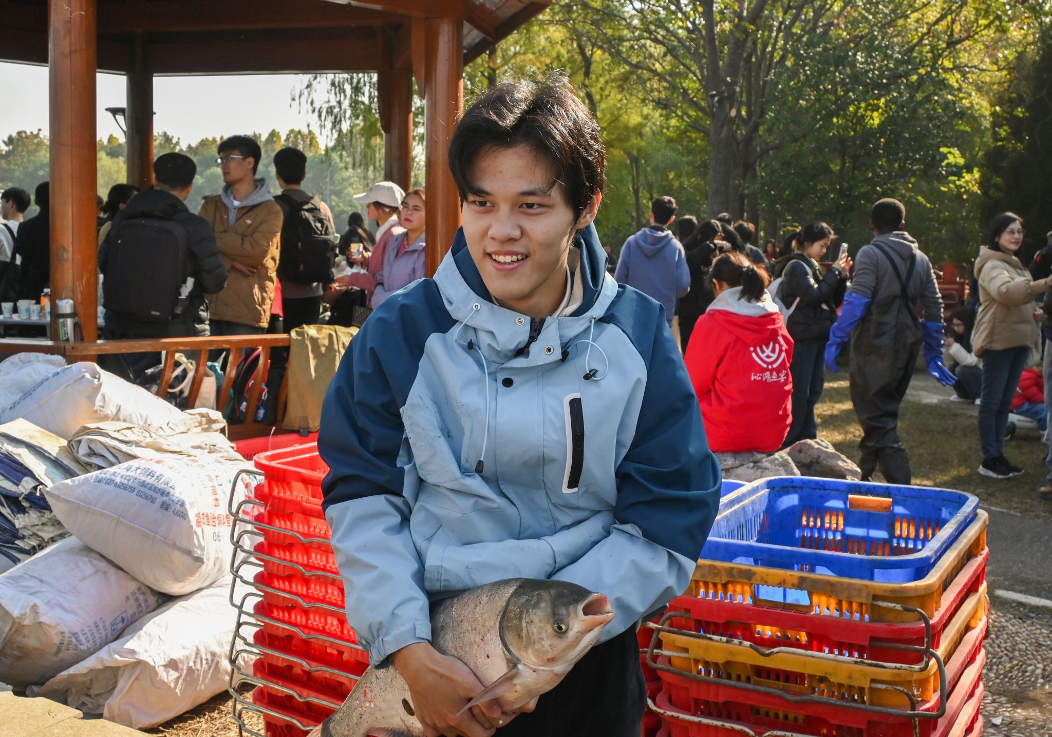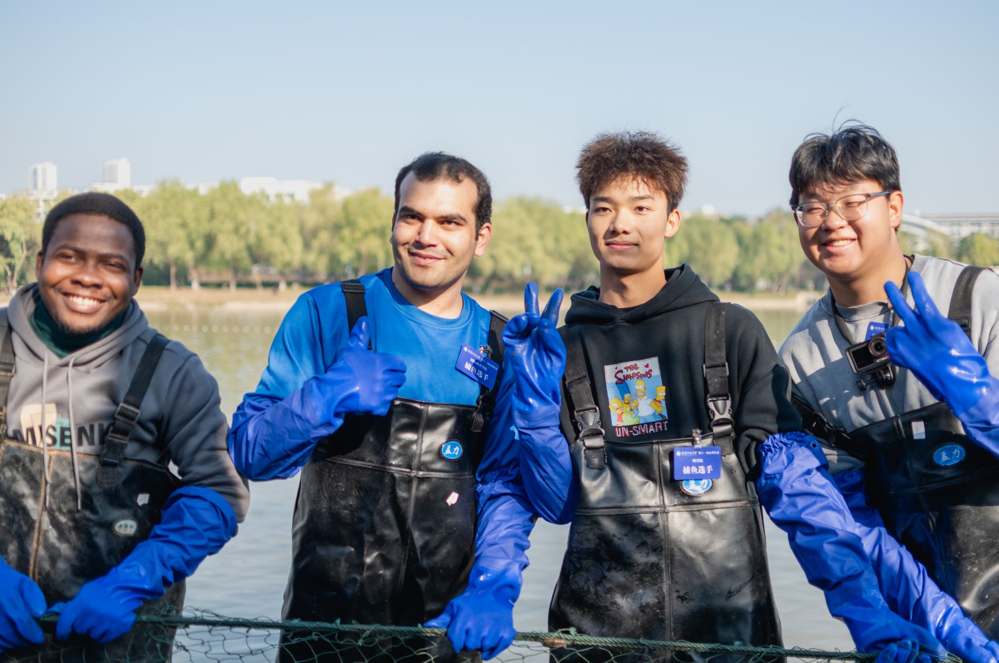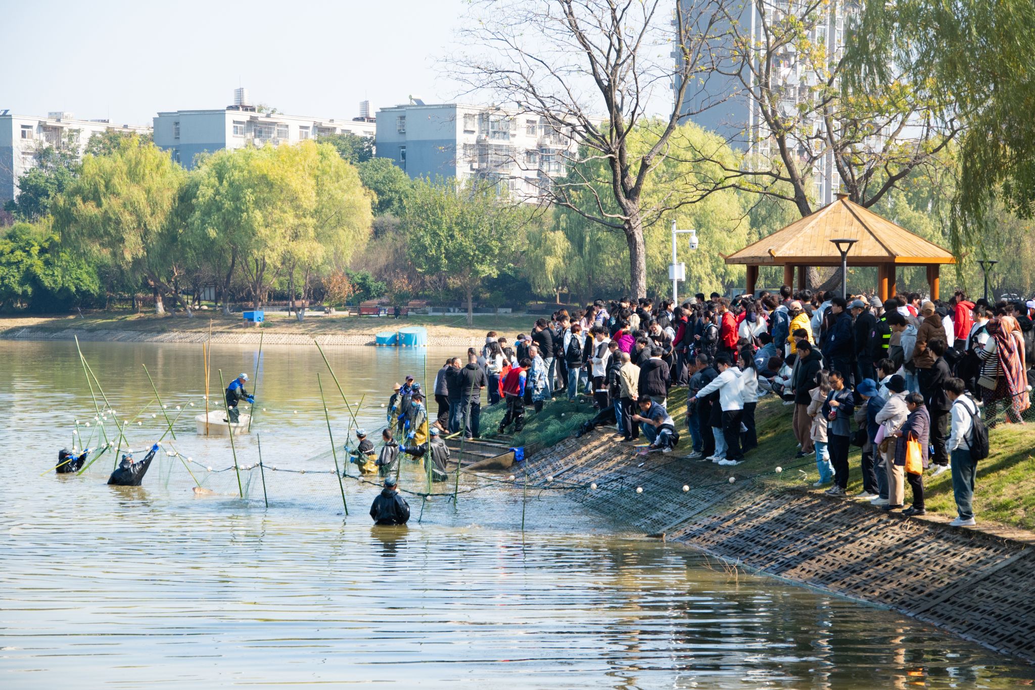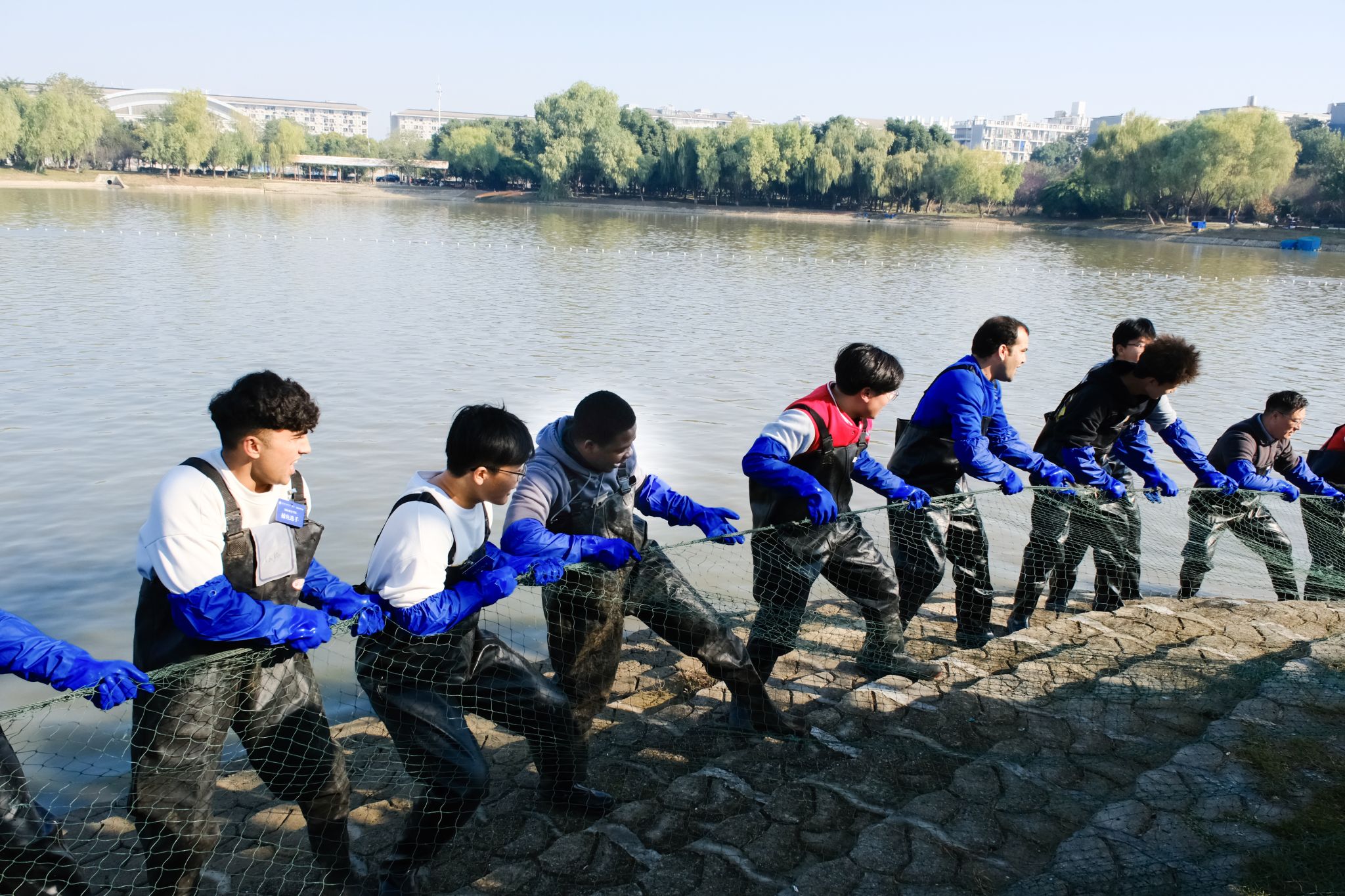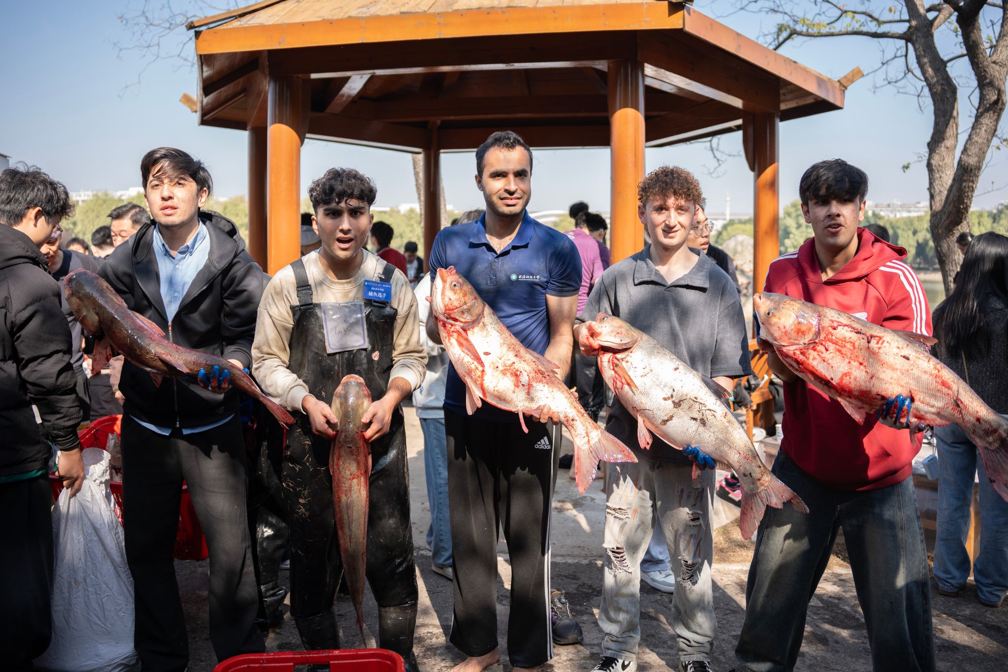 11月21日,我校举办第十一届“沁湖鱼宴”。本次活动的主题为”'鱼'你同心 共创一流“。在沁湖沿岸指定区域,中外学生与职工代表一起拉鱼、捕鱼。参加活动的师生其乐融融,活动展现出我校学子良好的精神风貌、传承了“厚德博学 崇实去浮”的校训精神,弘扬了“向上向美,力行力新”的沁湖文化。(孙正恒)