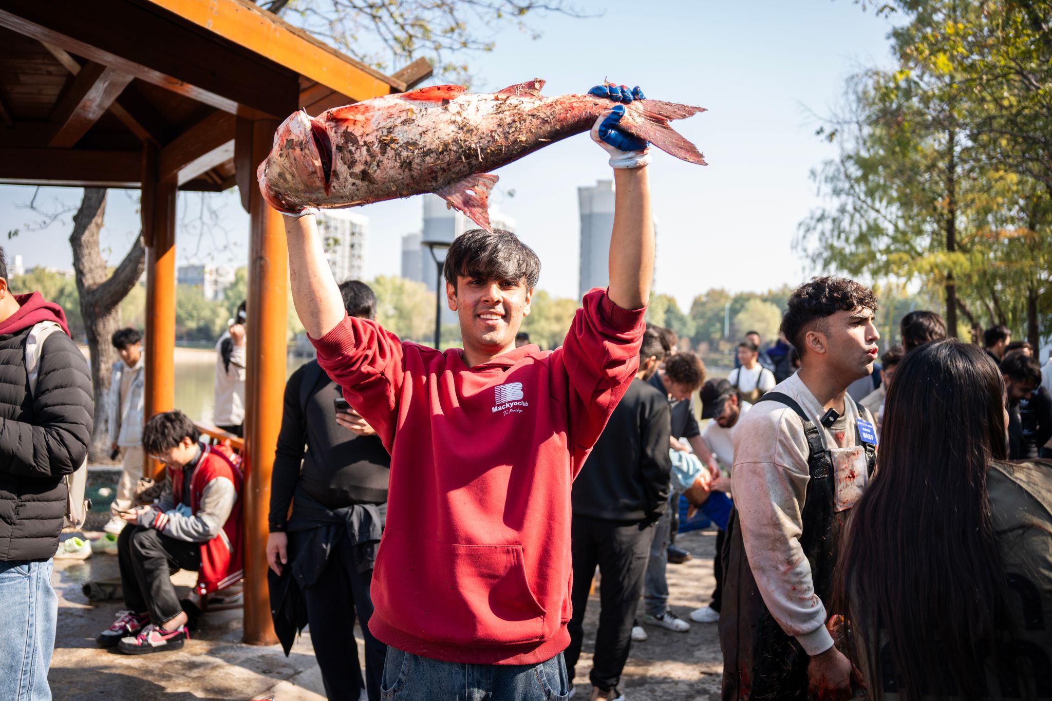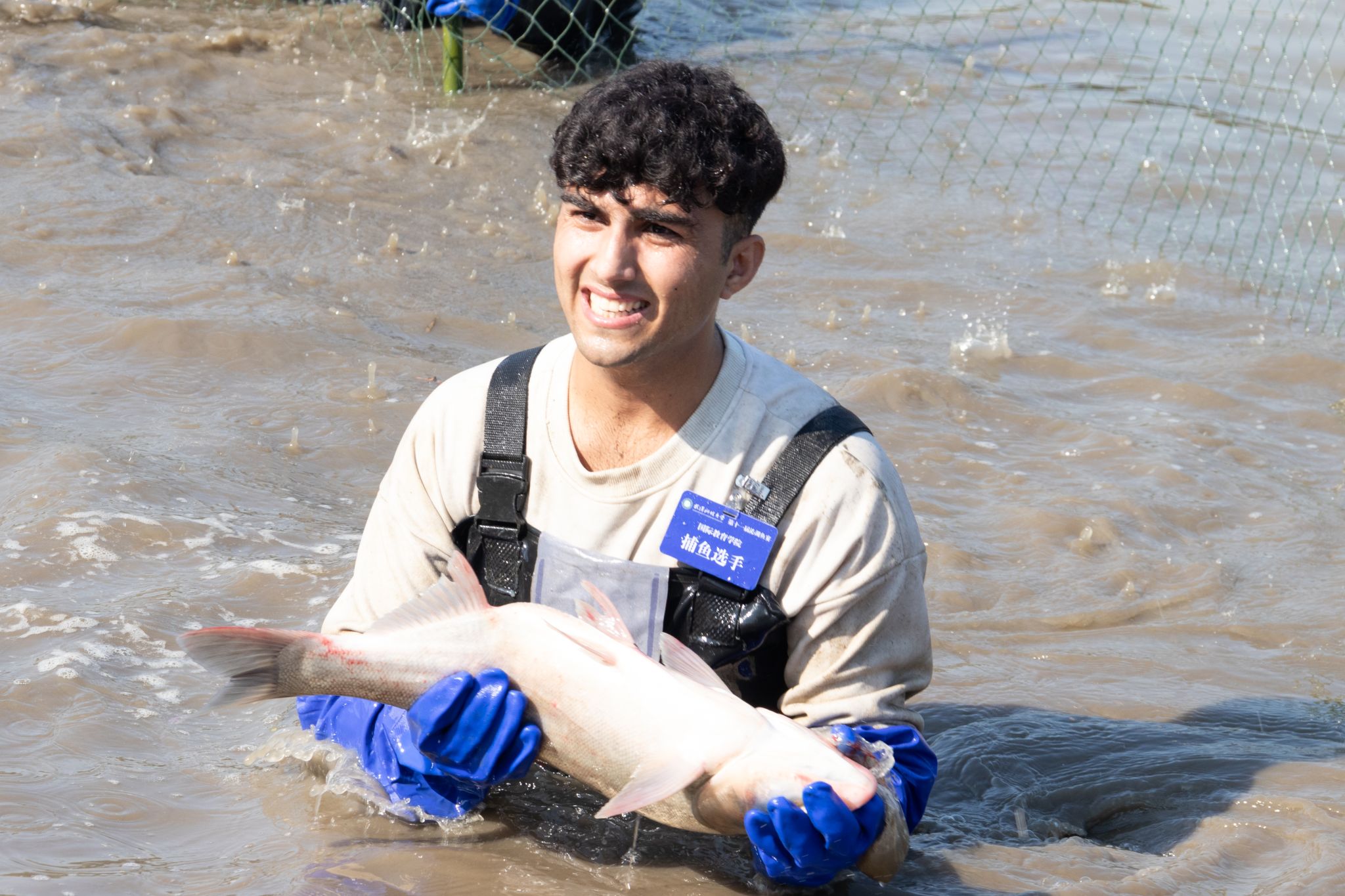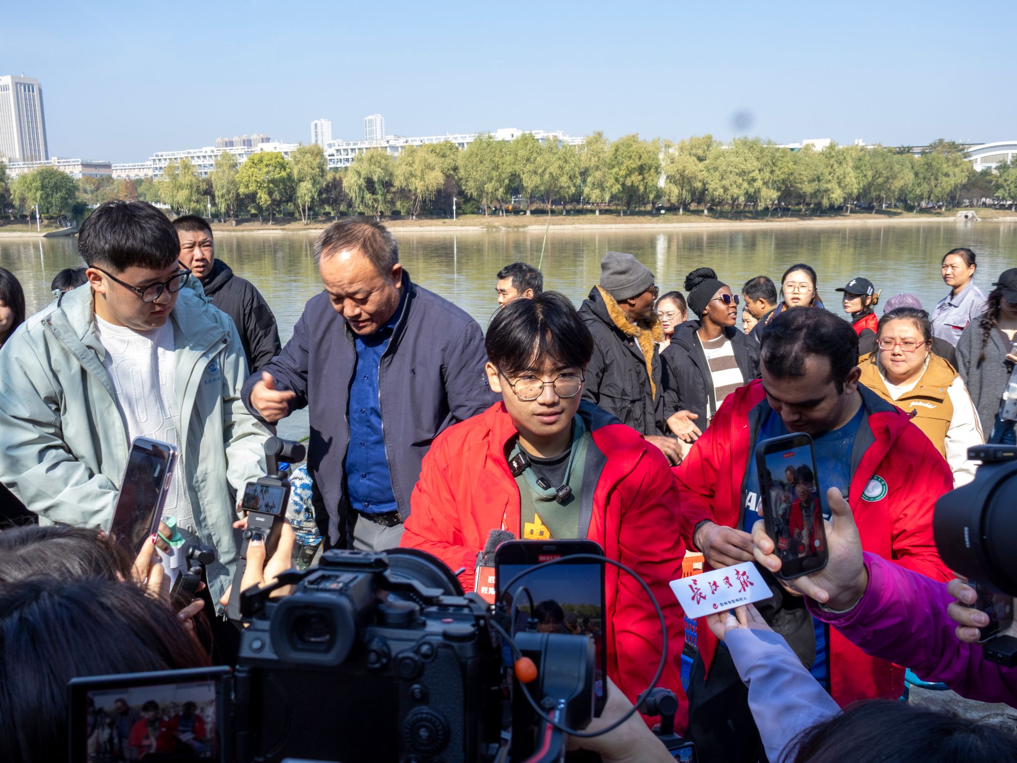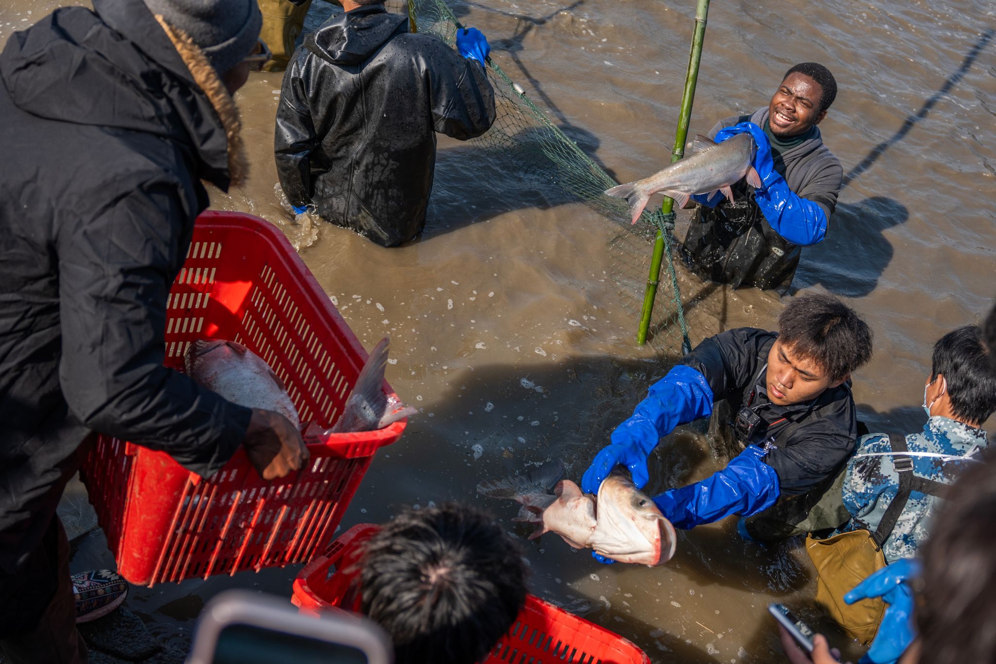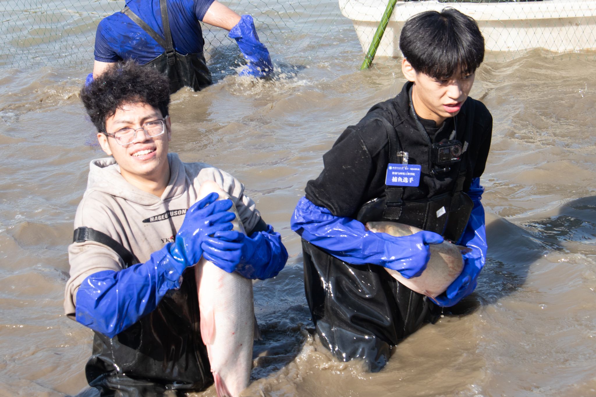 11月21日,我校举办第十一届“沁湖鱼宴”。本次活动的主题为”'鱼'你同心 共创一流“。在沁湖沿岸指定区域,中外学生与职工代表一起拉鱼、捕鱼。参加活动的师生其乐融融,活动展现出我校学子良好的精神风貌、传承了“厚德博学 崇实去浮”的校训精神,弘扬了“向上向美,力行力新”的沁湖文化。(孙正恒)