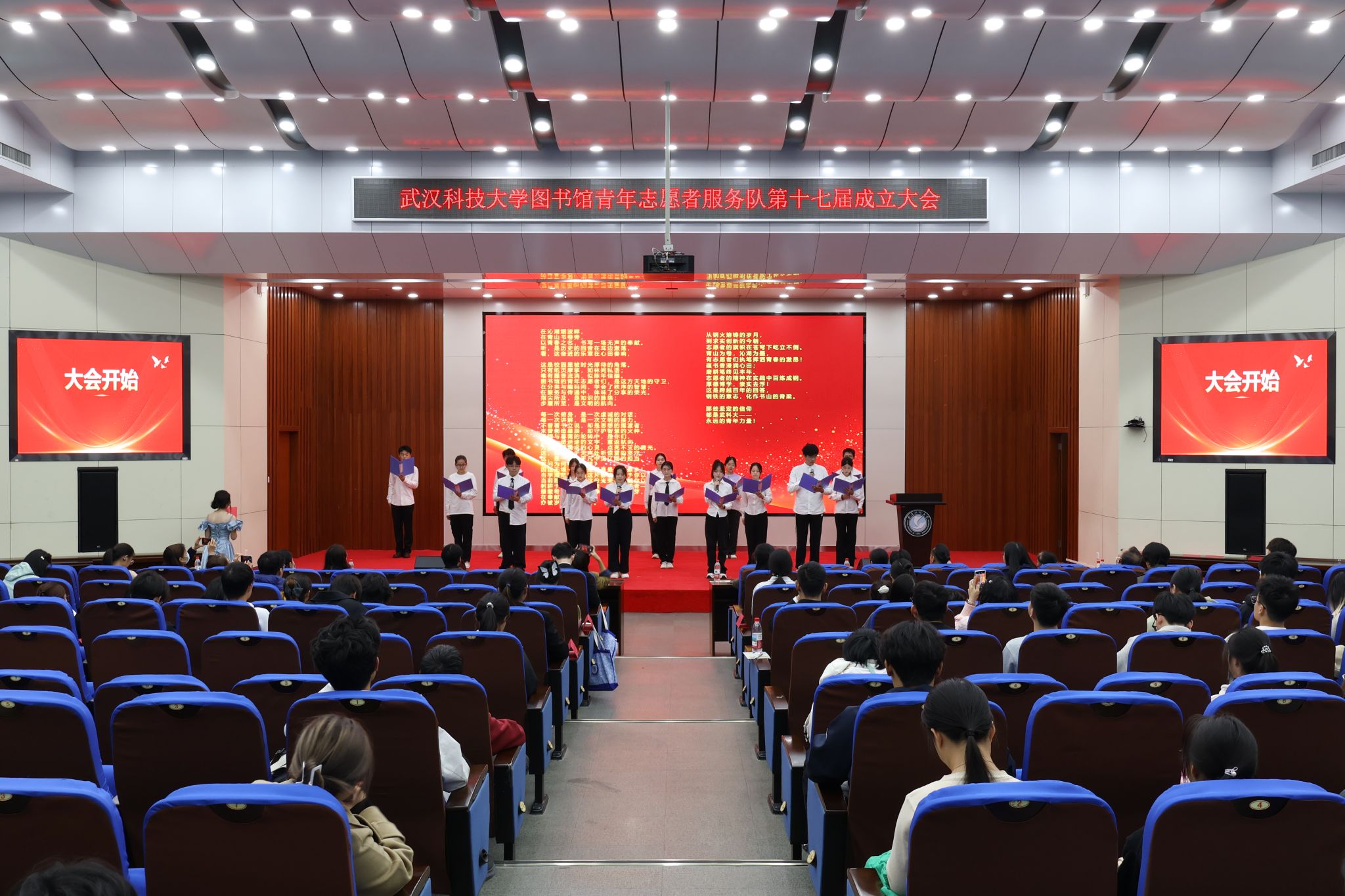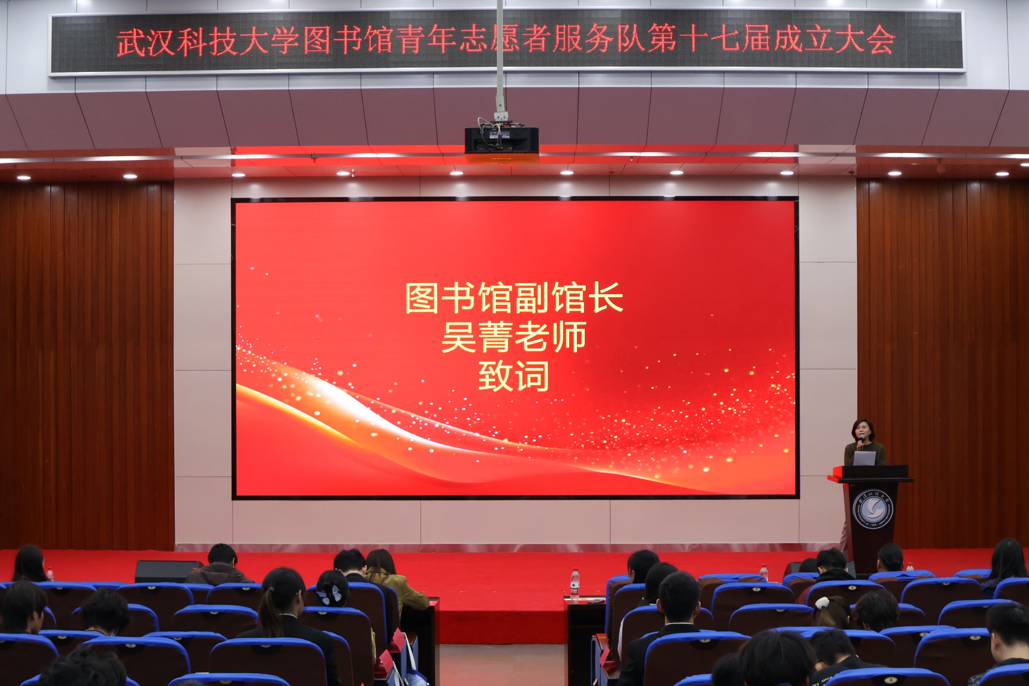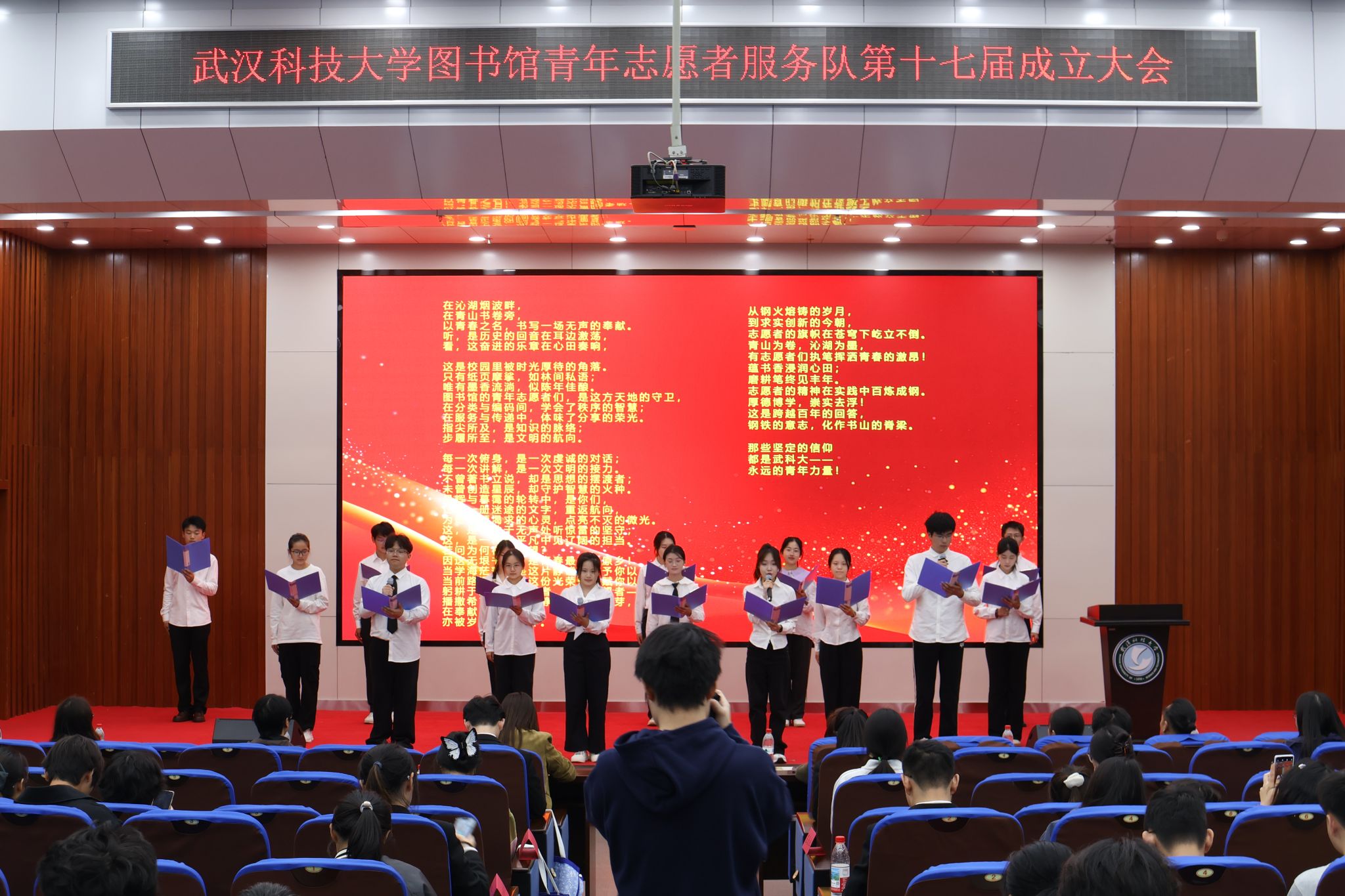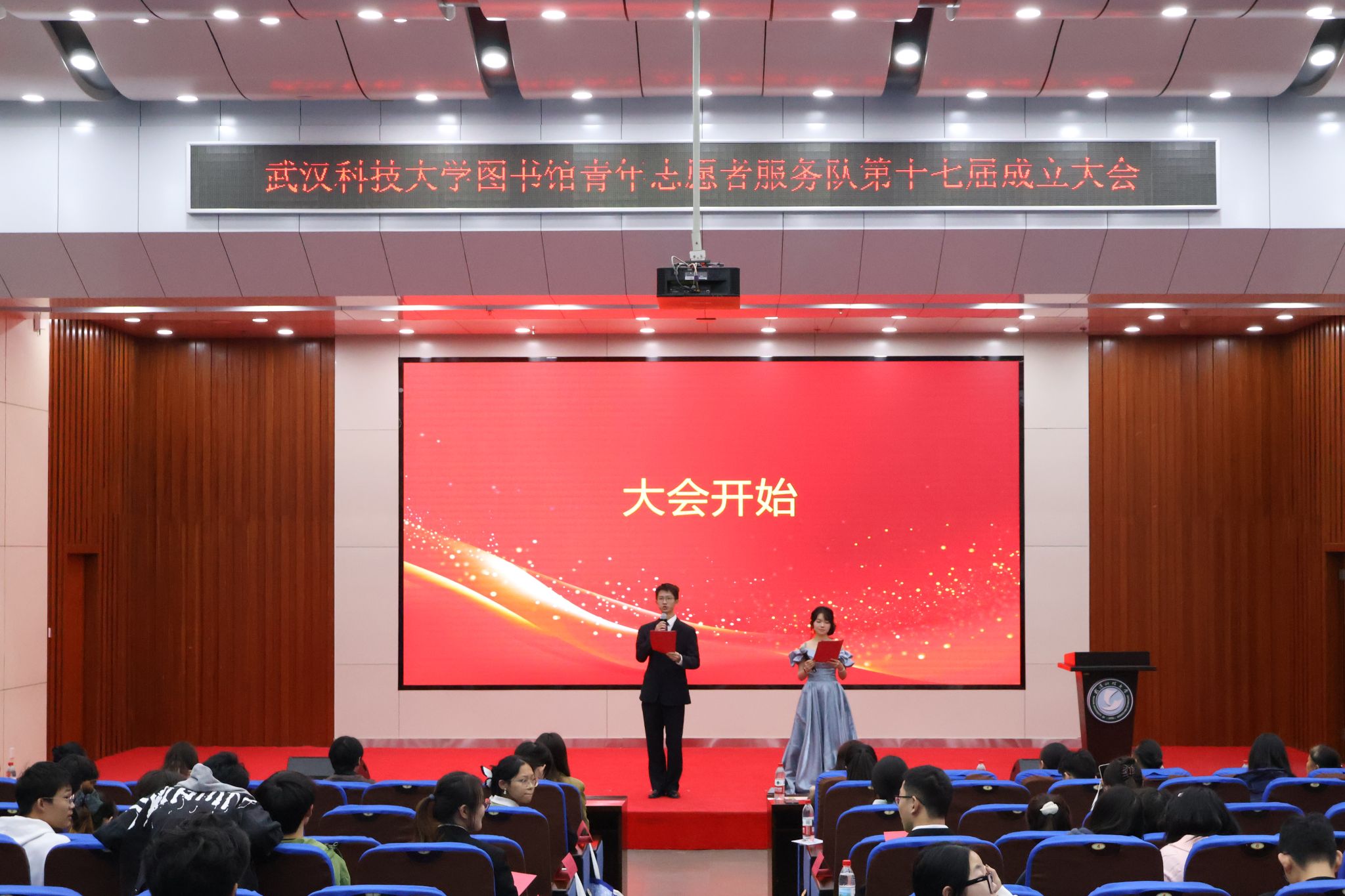 我校第十七届图书馆青年志愿者服务队成立大会在崇实会堂举行。