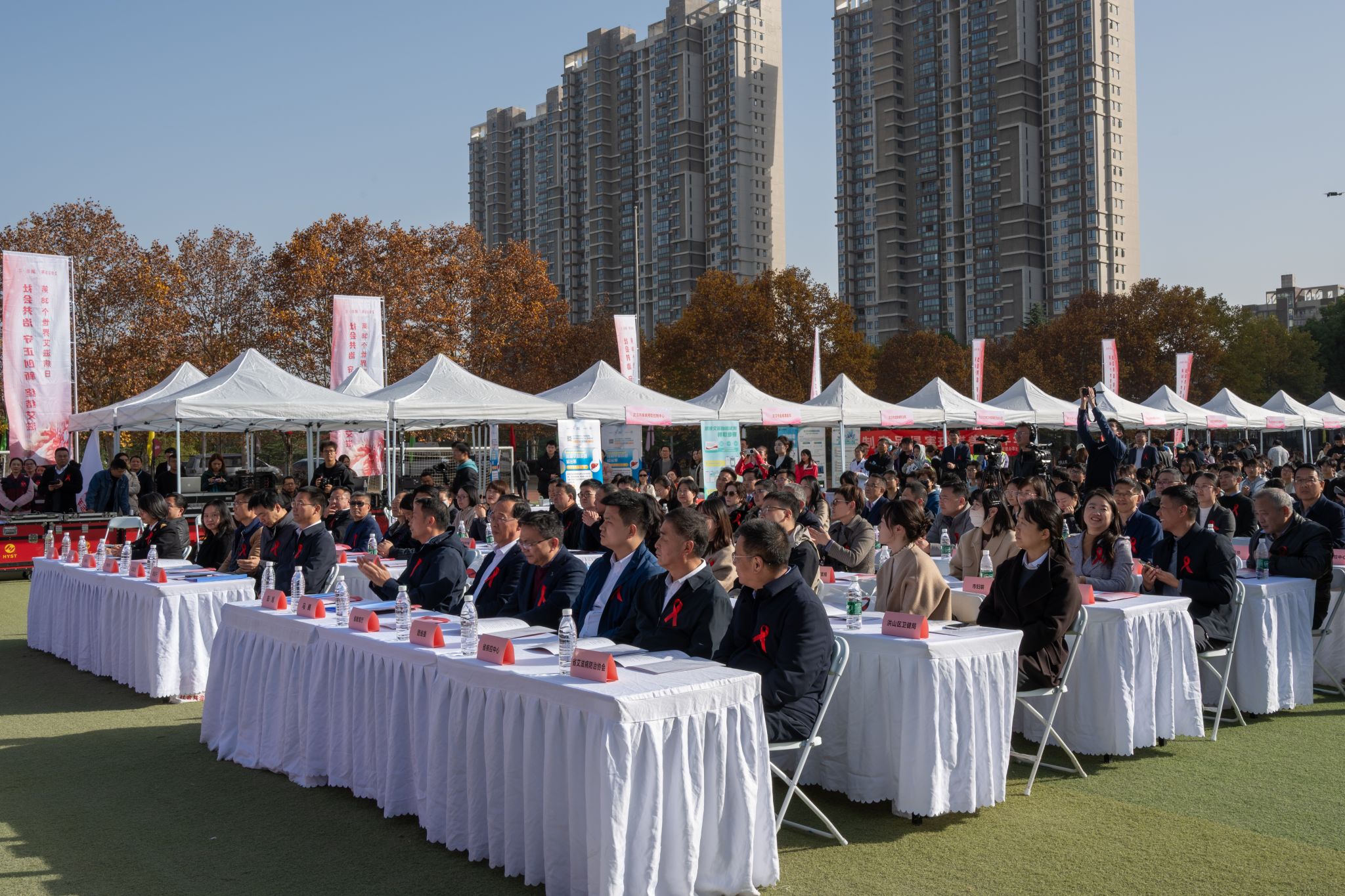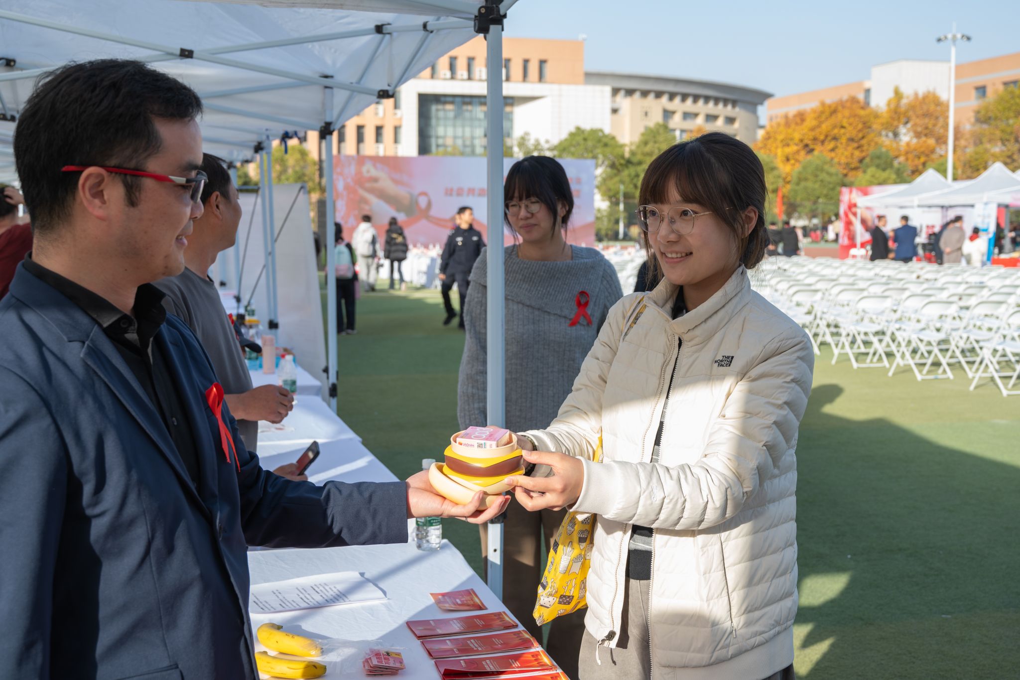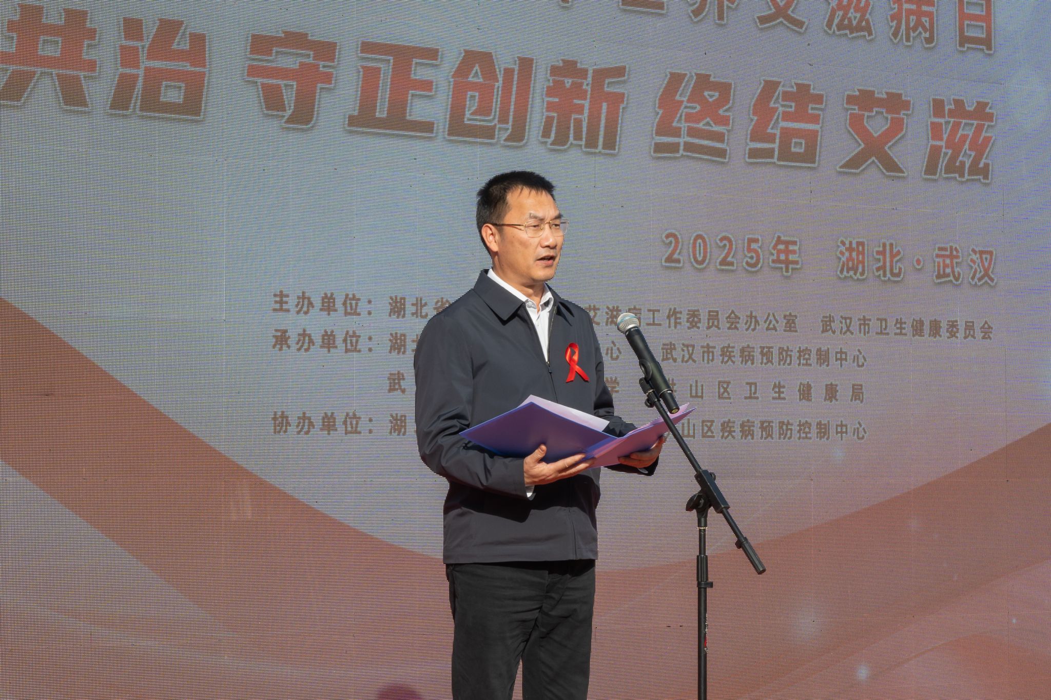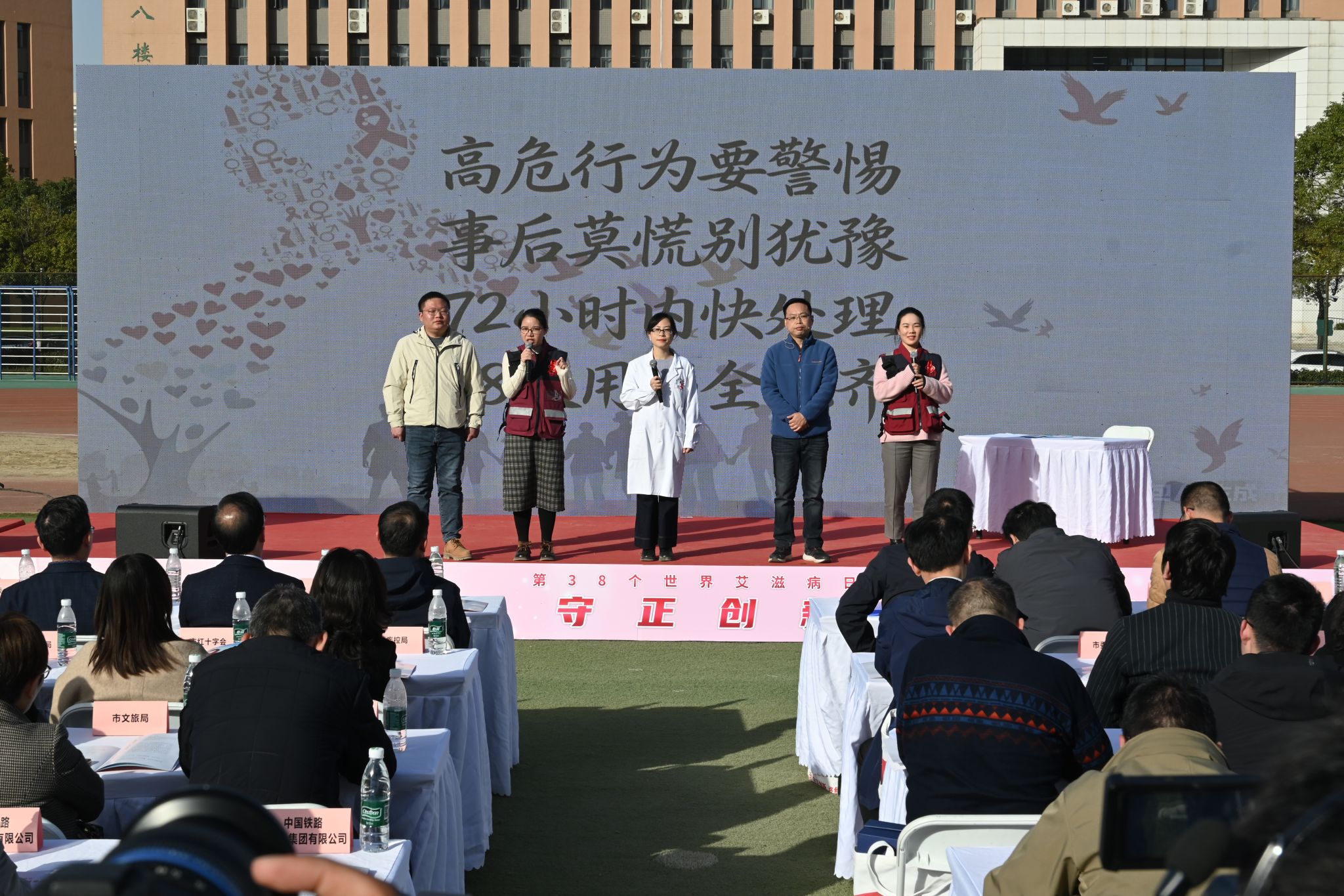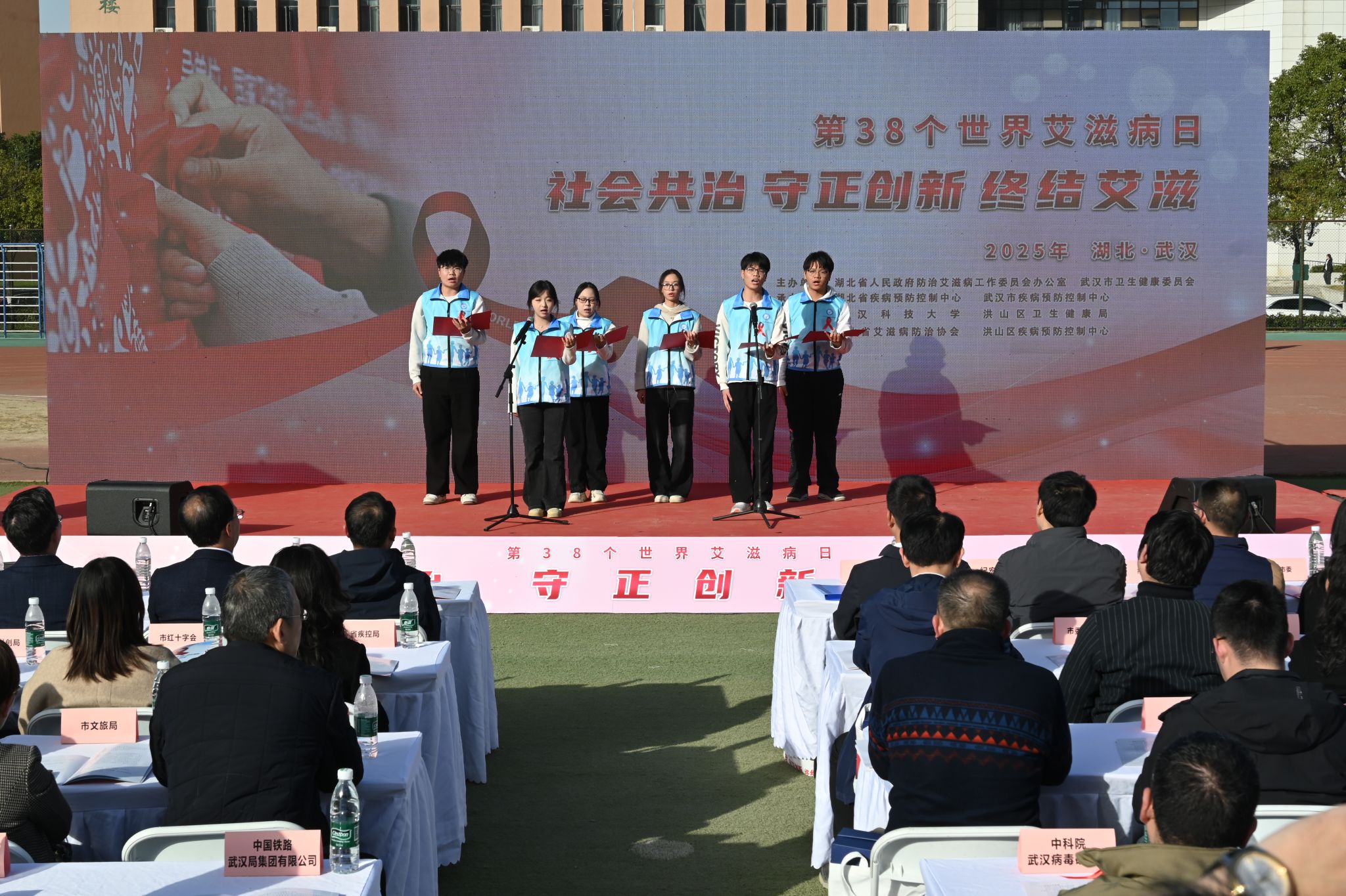 11月27日,湖北省第 38 个“世界艾滋病日”主题宣传活动在我校黄家湖校区南区体育场举办。我校、市卫健委、省政府防艾办和其他相关单位负责人参加启动仪式。启动仪式后,高校学生代表宣读倡议书,团省委、团市委为志愿者授旗。湖北省疾病预防控制中心等单位、企业在现场搭建展台,为师生们答疑解惑、提供健康建议。(孙正恒)