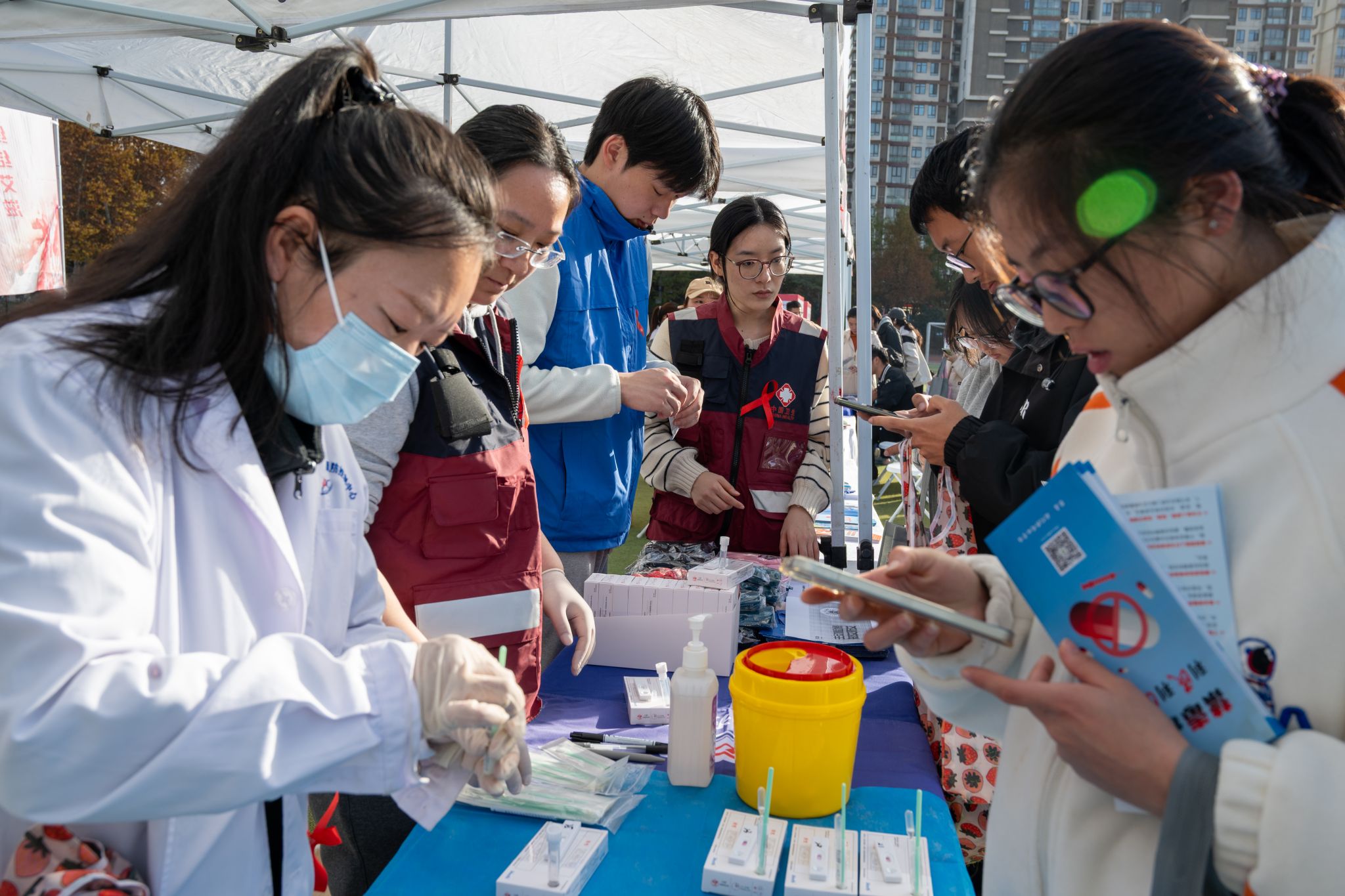 学生领取HIV检测试剂 舒一帆摄