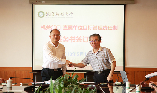 武科大网讯(记者谢晓丽)5月14日,学校举行机关部门、直属单位目标管理责任制任务书签订仪式。校长倪红卫逐一与34个二级单位签订目标责任制任务书。