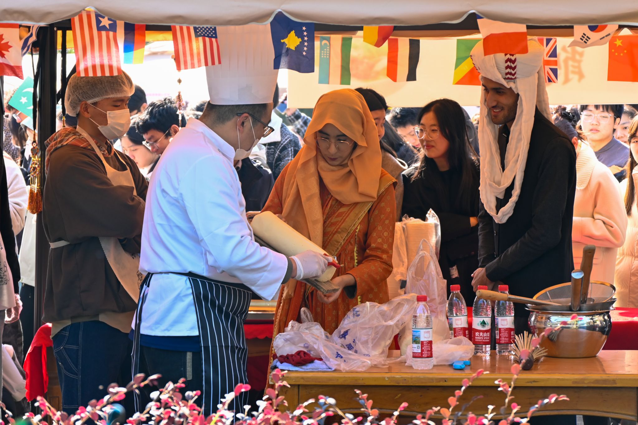 共创“双一流”,鱼宴亦课堂。在主干道旁,百米“双创长廊”成为另一道亮丽风景。创意鱼形剪纸栩栩如生,环保书签设计精巧,诗词飞花令雅趣横生……十一个学生社团巧妙地将“双一流”建设的硬核成果转化为可触、可感、可记的节日文创,为这场冬日盛会注入了浓郁的文化气息与青春活力,让师生在品味美食的同时,也享用了一道道精神大餐。
