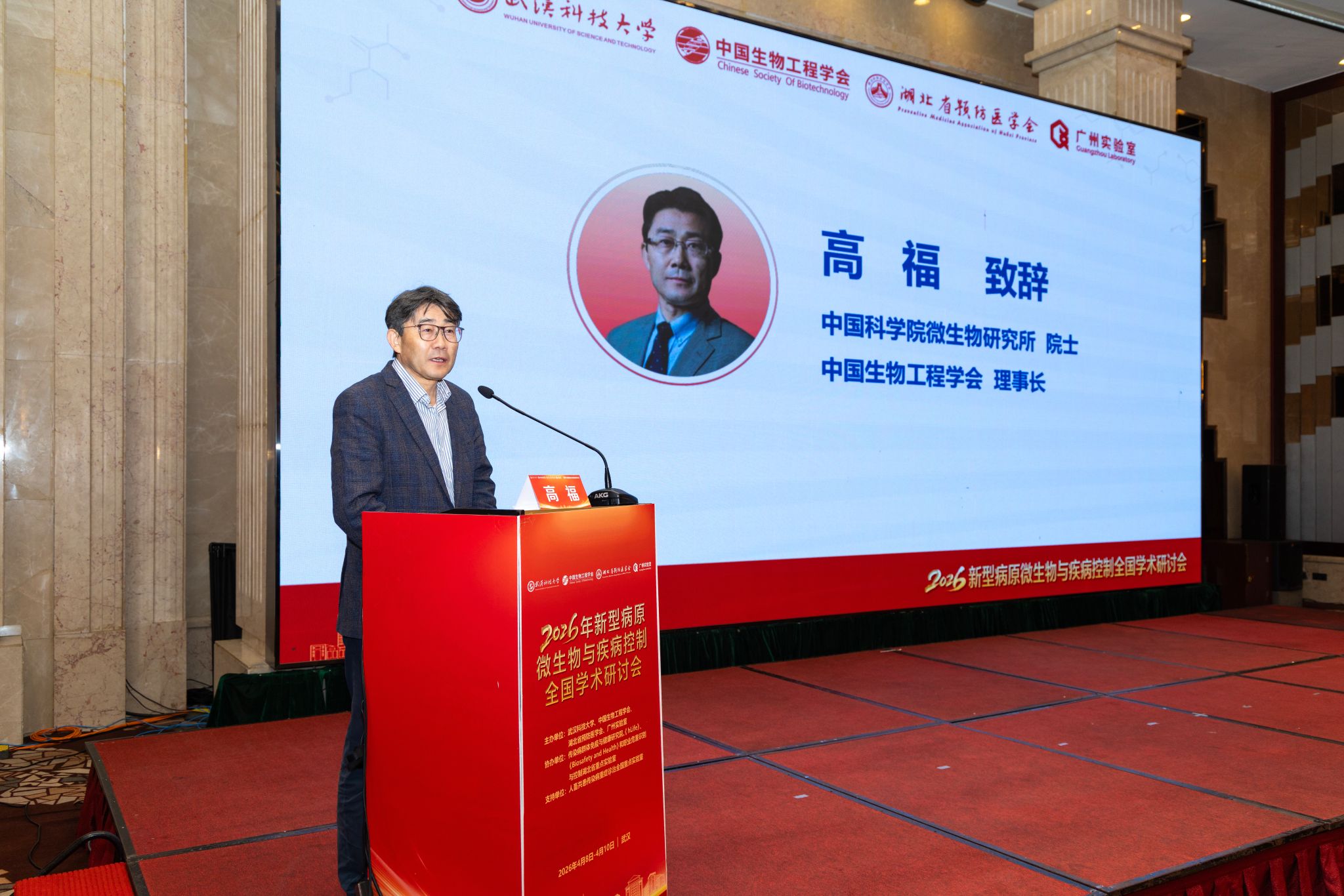 本次研讨会由武汉科技大学、中国生物工程学会、湖北省预防医学会和广州实验室联合主办,会议以“新型病原微生物与疾病控制”为主题,旨在关注当前全球范围内面临的新型病原微生物与传染性疾病控制挑战,探讨相关领域的前沿问题及未来发展趋势。大会共设6场主旨报告,由高福院士、王焰新院士等专家领衔主讲,同时开设“SFTS等疾病预防与控制”及“猴痘等病原免疫与致病机制”两个专题分会场,累计呈现20场深度报告,为与会人员奉献了一场高水平的学术盛宴。