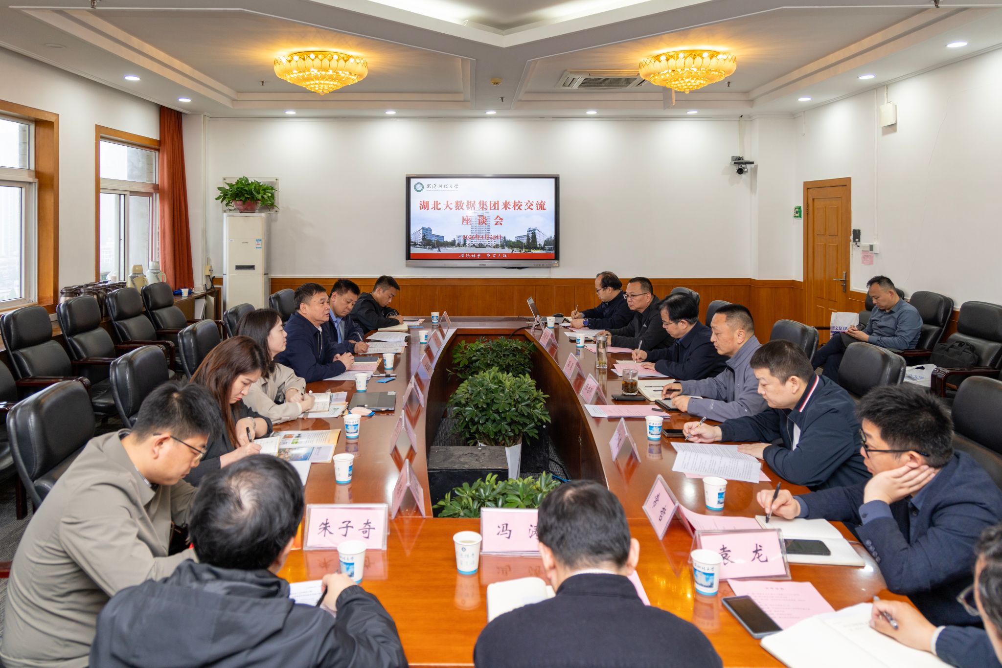 湖北大数据集团、软通动力信息技术(集团)股份有限公司有关负责人和我校有关职能部门、学院负责人参会。