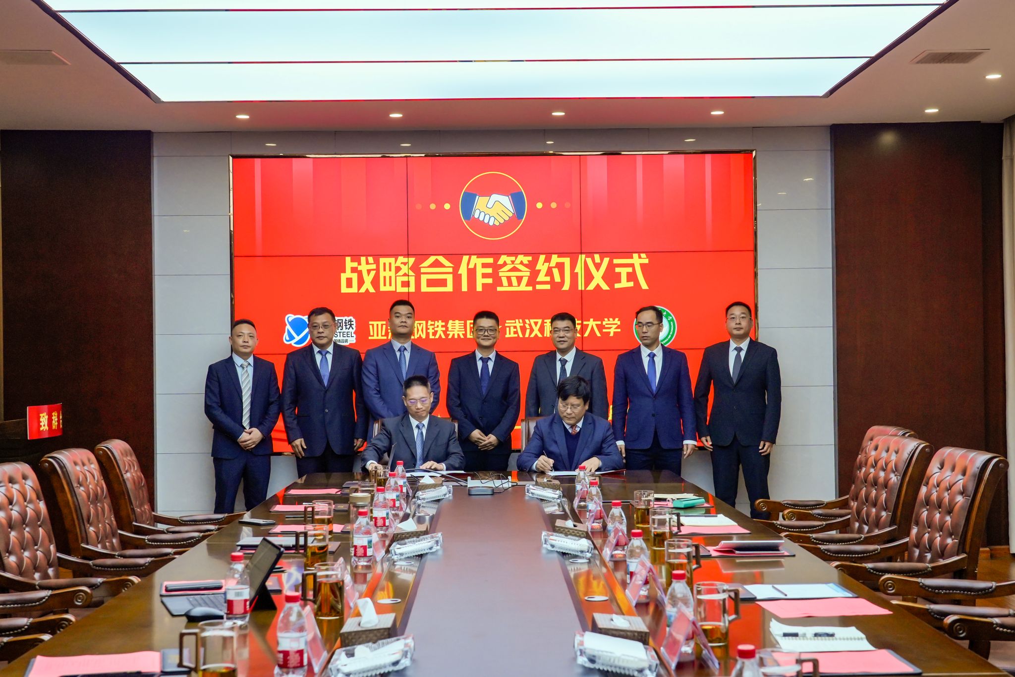 在与会代表的共同见证下,沈季伟与王宏斌分别代表双方签署了《战略合作协议》。随后,双方还签署了首个重点科研项目合作协议,并共同为“武汉科技大学-亚新钢铁产学合作创新中心”和“武汉科技大学大学生实习实践基地”揭牌。