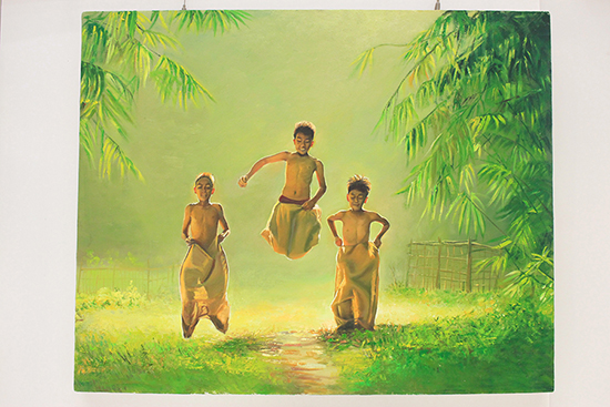“在美丽中国篇中,同学们主要表现广大人民群众在全面建设社会主义现代化国家新征程的生活工作的图卷”,讲解员说道。《沁湖边的石头路》取景地是学校内连接图书馆到主教楼的一条小路;《美丽中国是我家》描绘的是地球上放大版的中国轮廓;《我爱和平》则以沁湖为背景,蓝色的天空展现了“和平”的寓意。