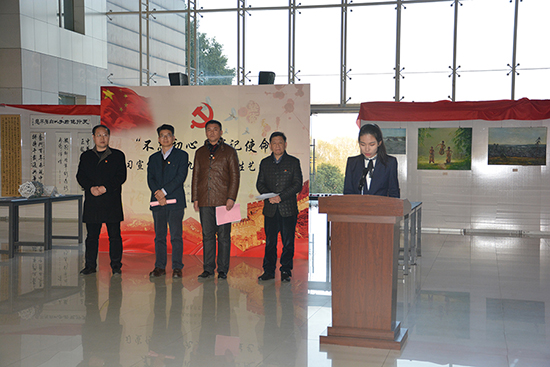 武科大网讯(见习记者王若曦 通讯员赵敬灿 许丹 摄影于晴 冯姿)为响应十九大的号召,12月20日,由我校党委组织部、党委宣传部以及艺术与设计学院党委主办的“不忘初心 牢记使命”学习宣传党的十九大精神学生艺术作品展开幕式,于黄家湖校区主楼大厅成功举办。校党委副书记盛建龙、校党委宣传部常务副部长孔波、艺术与设计学院党委书记刘运显,还有学校部分职能部门、学院领导老师及学生代表参加本次活动,党委组织部部长彭代祥担任主持人。