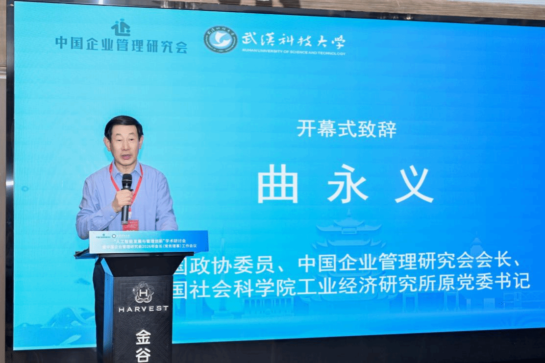 武科大网讯 4月11日,“人工智能发展与管理创新”学术研讨会暨中国企业管理研究会2026年会长(常务理事)工作会议在武汉举行。本次会议以“人工智能发展与管理创新”为主题,汇聚了来自全国高校、研究机构及企业界的百余位专家学者与管理者,围绕AI智能体驱动管理变革、AI赋能企业创新、颠覆性技术创新的治理等前沿议题展开深入研讨。