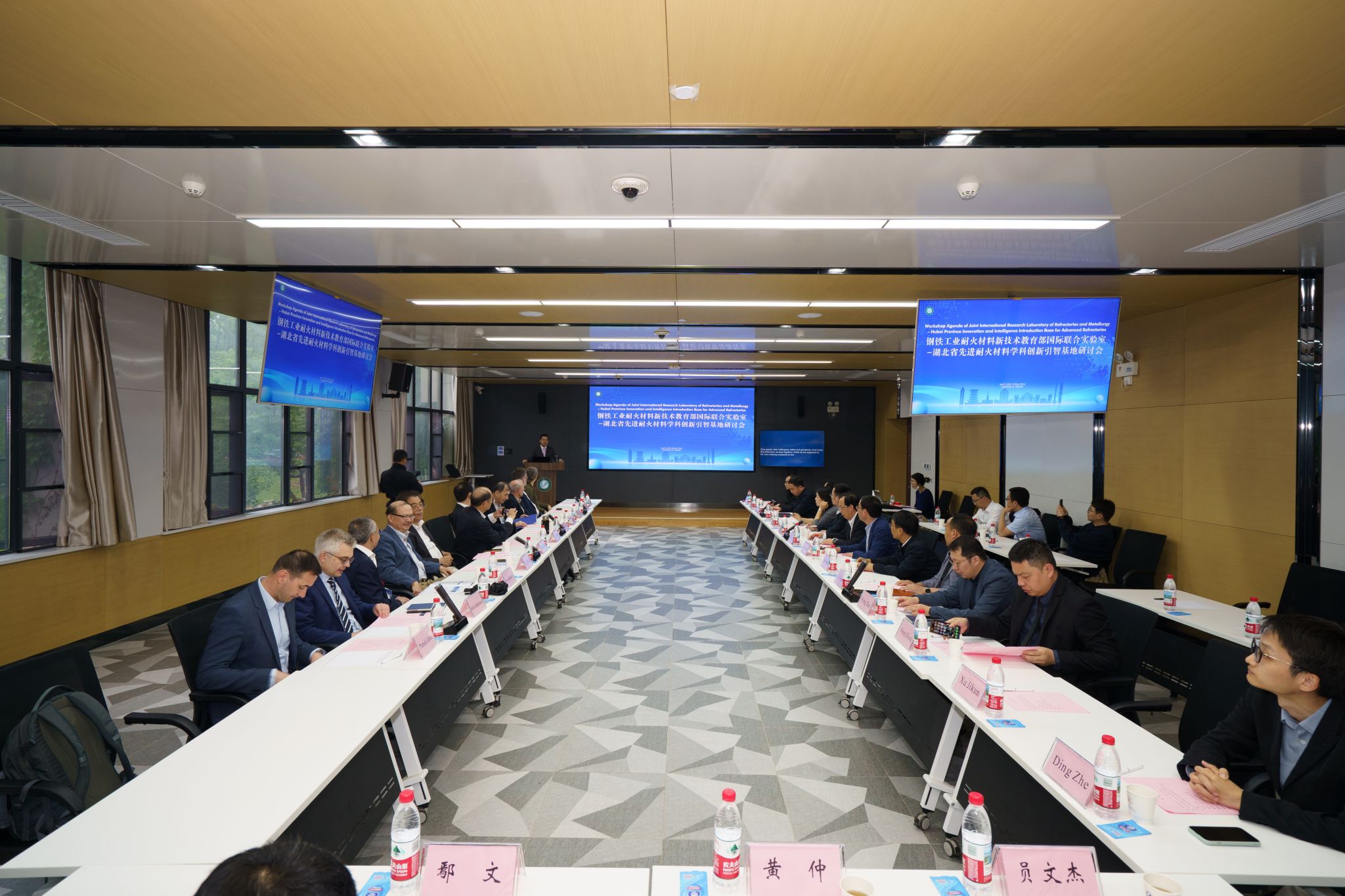 武科大网讯(通讯员周欣童 记者李周阳 摄影孙正恒)4月11日,钢铁工业耐火材料新技术教育部国际联合实验室-湖北省先进耐火材料学科创新引智基地研讨会在我校青山校区举行。副校长马腾出席会议并讲话。