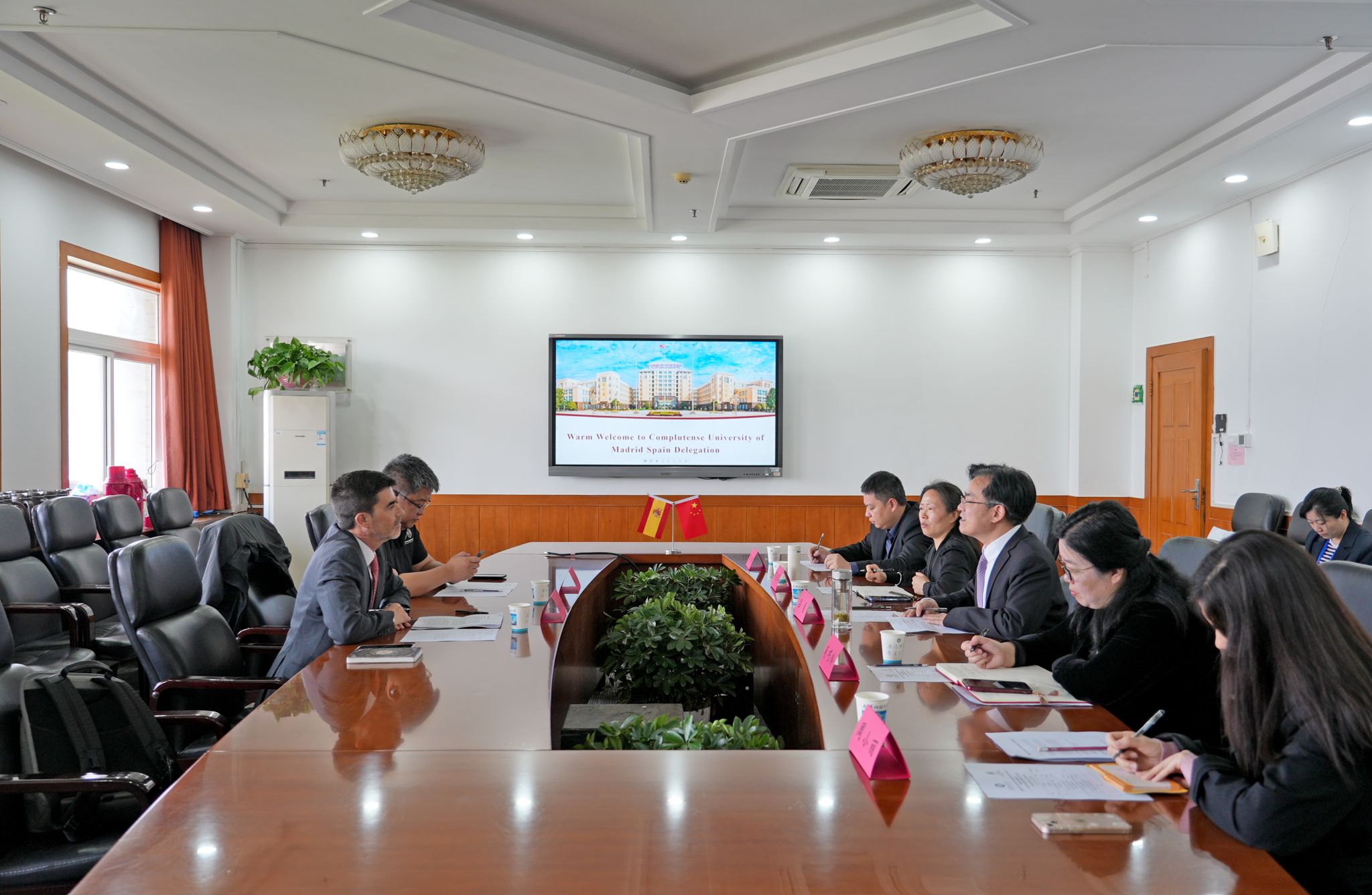 学校国际交流合作处、马德里康普顿斯学院相关负责人参与会谈。(国际交流合作处)