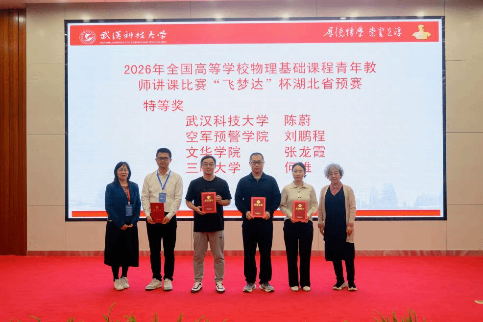 武科大网讯 近日,2026年全国高等学校物理基础课程青年教师讲课比赛湖北省预赛结果揭晓。我校物理与力学学院青年教师陈蔚以总分第一的成绩斩获特等奖。