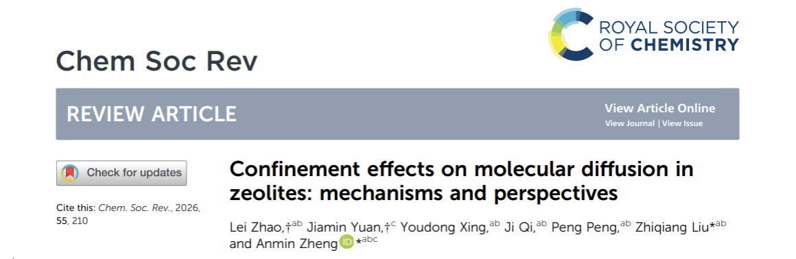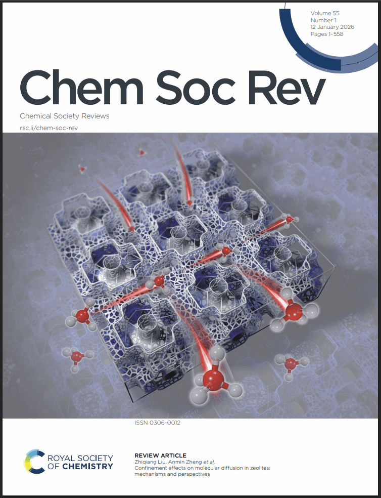 武科大网讯(通讯员李江江) 近日,我校核磁共振与分子科学交叉研究院/化学与化工学院郑安民、刘志强教授团队在《Chemical Society Reviews》发表了题为“Confinement effects on molecular diffusion in zeolites: mechanisms and perspectives”的文章(Chem. Soc. Rev.,2026, 55, 210-253),并入选为封面文章,针对分子筛纳米孔道内限域扩散的微观机制进行了介绍。论文通讯作者为我校教授刘志强、郑安民,学校为论文第一单位。