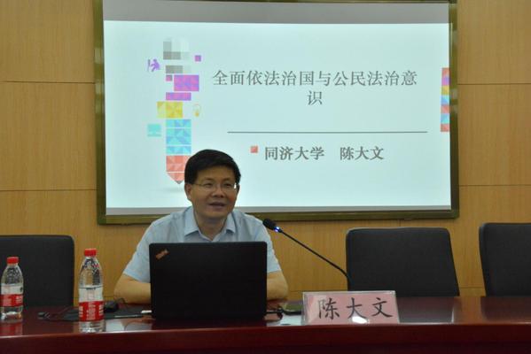 陈大文教授分别从“法治意识的内涵”、“公民法治意识的构成要素”、“培养大学生法治意识的意义与目标”三个板块,通过案例分析和理论解读,系统介绍了公民法治意识的三层构成要素,详细阐释了学生法治意识培养的重要意义与具体目标。
