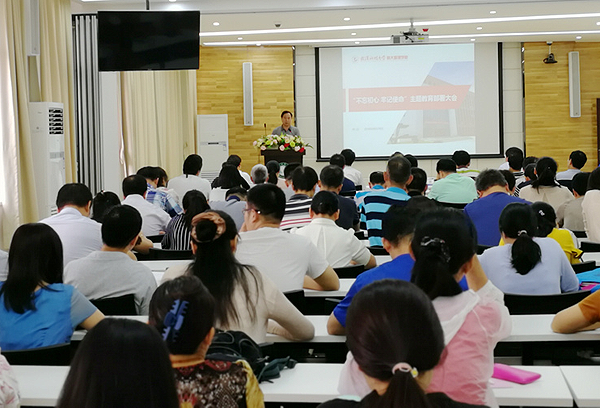 武科大网讯(通讯员卢文博 许璎珞)9月16日下午,恒大管理学院在黄家湖校区教八楼80307报告厅召开“不忘初心、牢记使命”主题教育部署大会。校党委副书记孙国胜,恒大管理学院党委书记张廷、院长邓旭东,副书记陈凯、副院长邱玉莲、童泽平、崔涛,学院全体教职工党员、学生党支部书记参加会议。